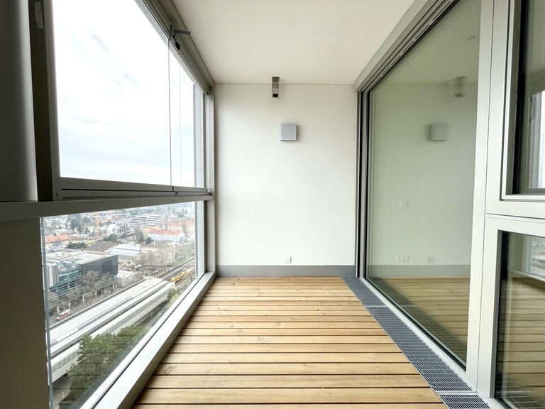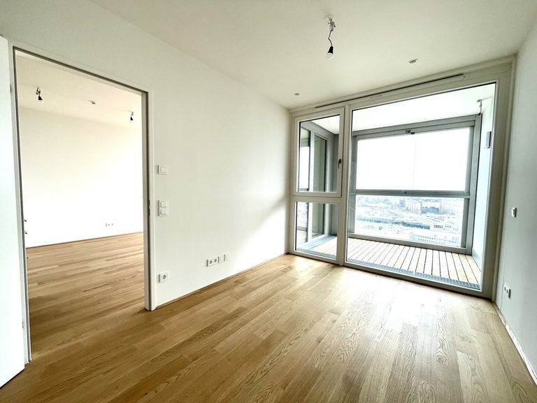 Diese außergewöhnliche Wohnung mit Blick auf die Stadt und über die Donau befindet sich im 18. Liftstock des VIENNA TWENTYTWO welches 2023 fertiggestellt wurde und unmittelbar bei der Ubahn-Station Kagran (U1) und dem Donauzentrum und der Vienna International School (VIS) liegt. Der Turm hat insgesamt 33. Stockwerke und verfügt über eine Vielzahl von Annehmlichkeiten und Freizeitangeboten.