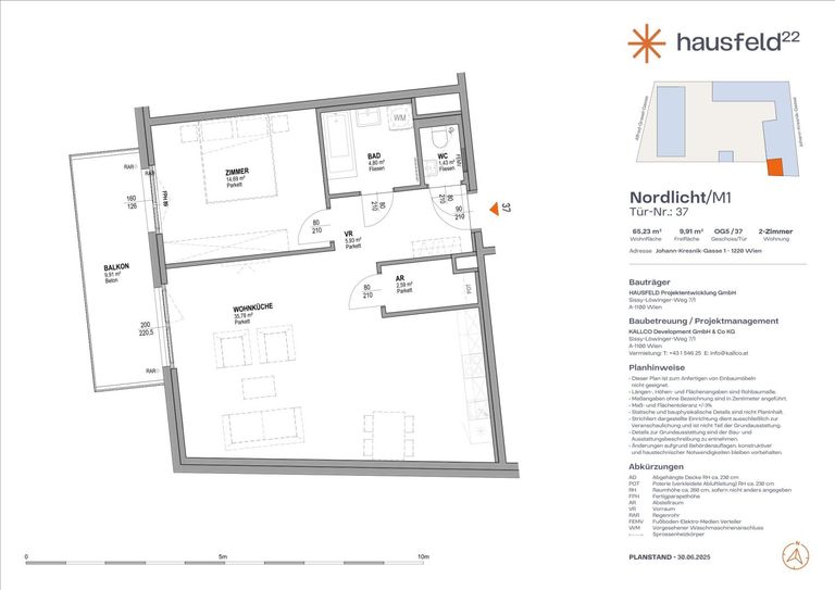 Unbefristete Neubau-Mietwohnung im Oberen Hausfeld | Termin online buchen: www.hausfeld22.at/nordlicht