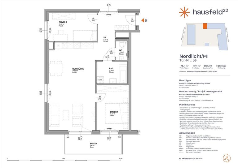 Unbefristete Neubau-Mietwohnung im Oberen Hausfeld | Termin online buchen: www.hausfeld22.at/nordlicht