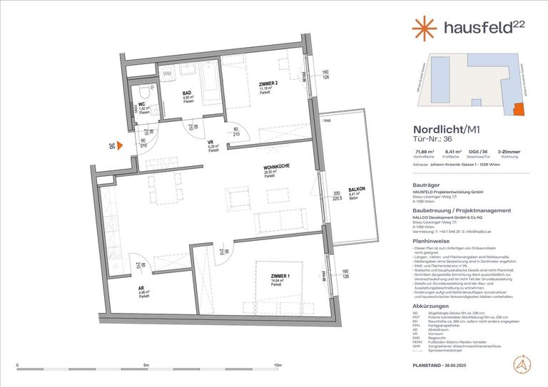 Unbefristete Neubau-Mietwohnung im Oberen Hausfeld | Termin online buchen: www.hausfeld22.at/nordlicht