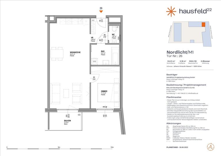 Unbefristete Neubau-Mietwohnung im Oberen Hausfeld | Termin online buchen: www.hausfeld22.at/nordlicht