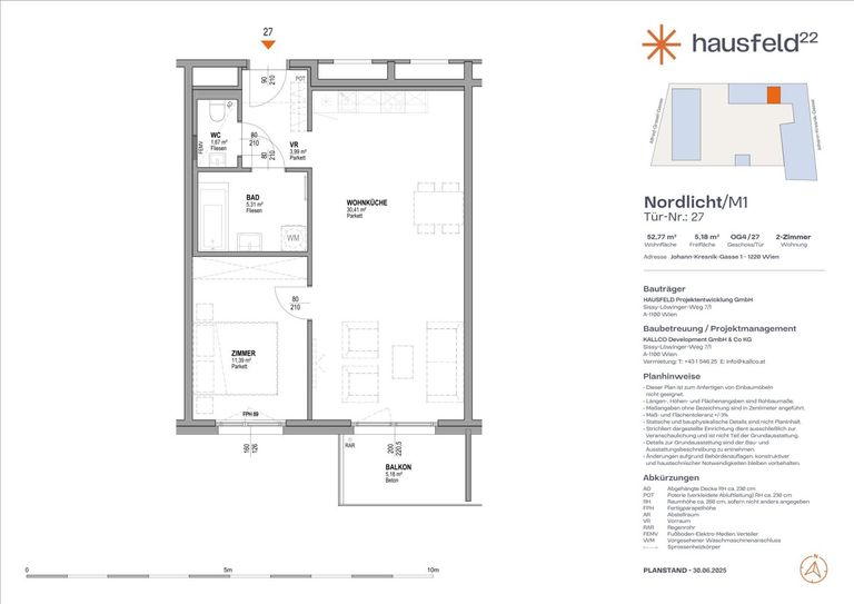 Unbefristete Neubau-Mietwohnung im Oberen Hausfeld Top 2.27 | Termin online buchen: www.hausfeld22.at/nordlicht