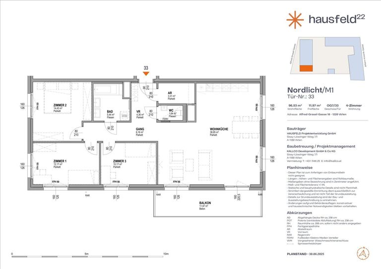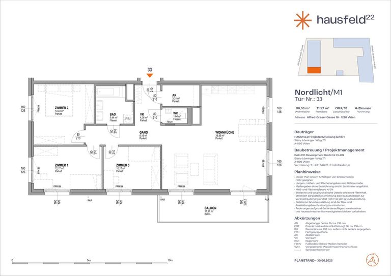 Unbefristete Neubau-Mietwohnung im Oberen Hausfeld Top 1.33 | Termin online buchen: www.hausfeld22.at/nordlicht