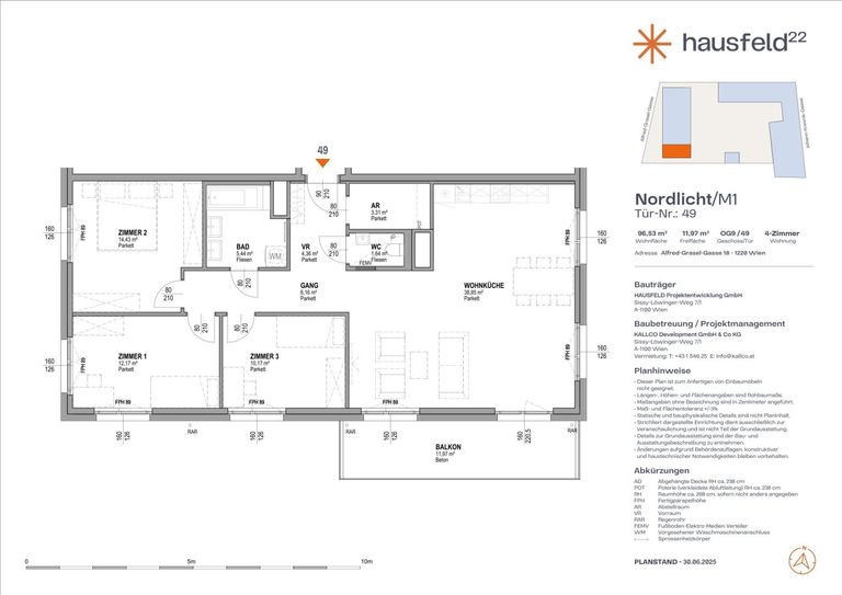 Unbefristete Neubau-Mietwohnung im Oberen Hausfeld Top 1.49 | Termin online buchen: www.hausfeld22.at/nordlicht