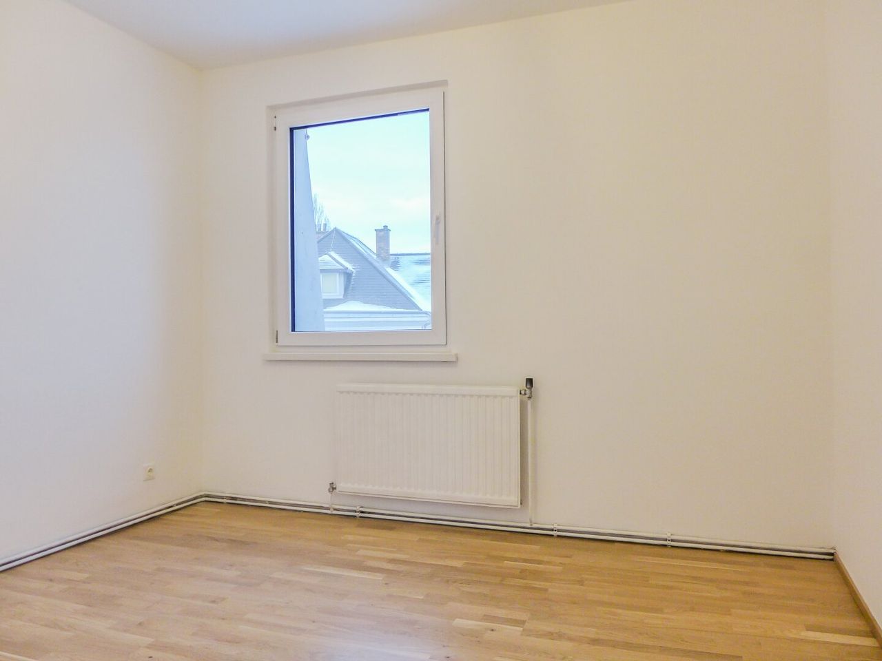 Vom Vorraum gelangt man in Küche und Bad sowie den großen, zentralen Wohnraum. Die beiden weiteren Räume sind von diesem getrennt begehbar.