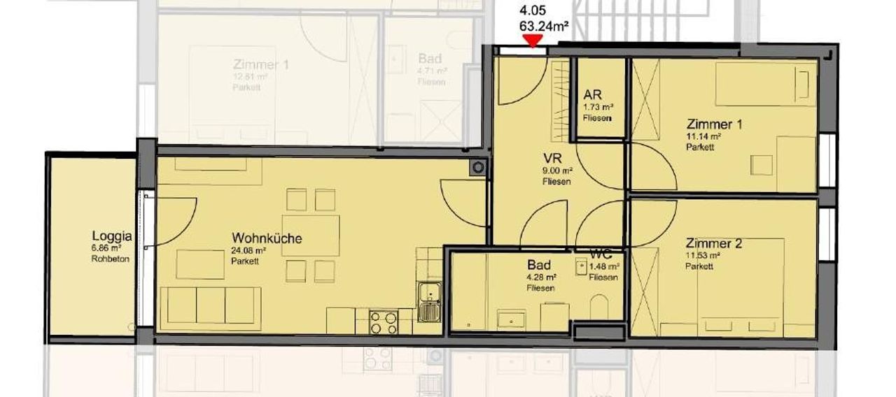 Wohnnutzfläche ca. 70,01m² davon 6,86m² Loggia