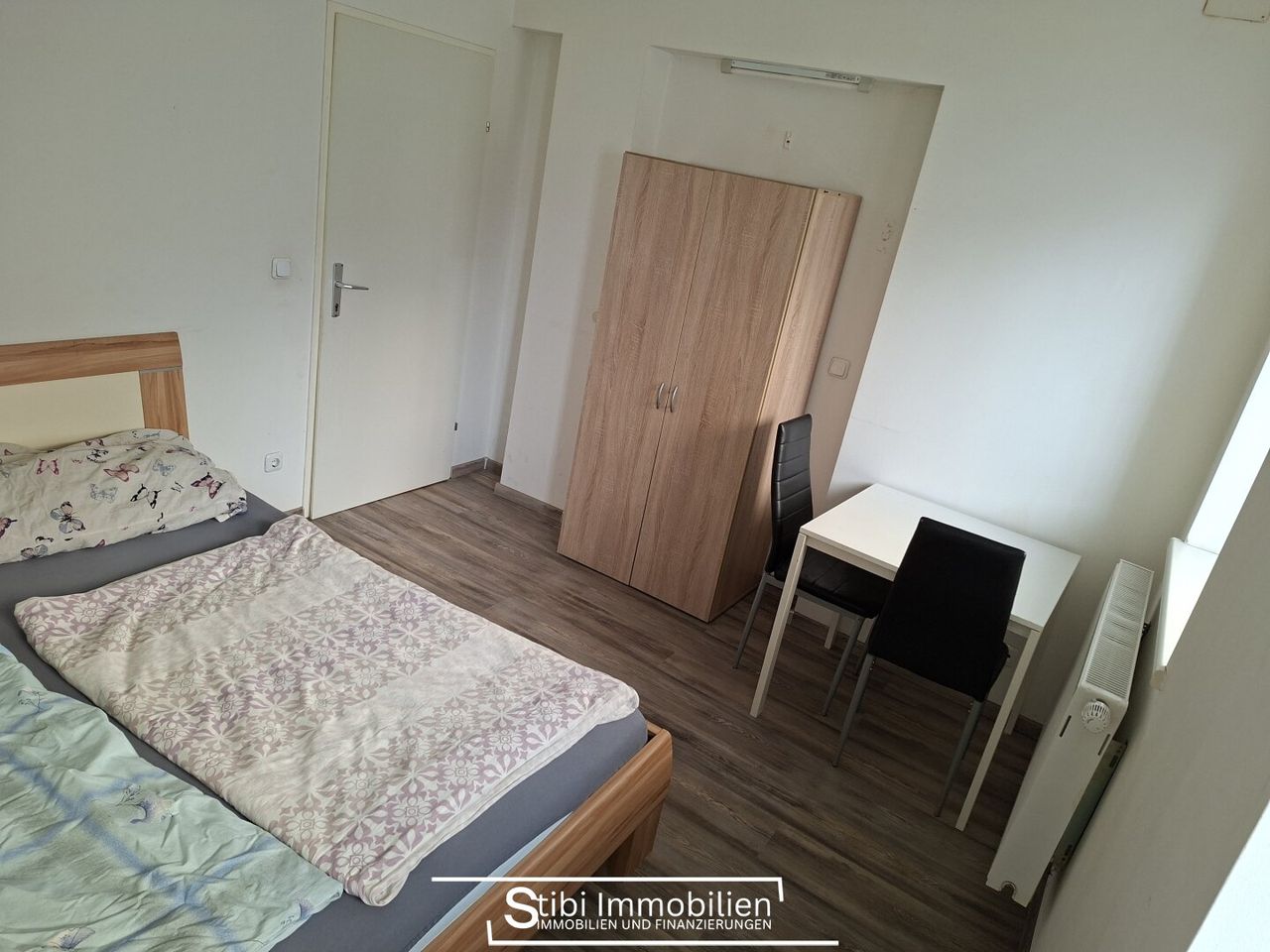 Das Zimmer ist voll möbliert (Bett, Schrank, Tisch, Matratze und Polster) – Koffer packen und einziehen.