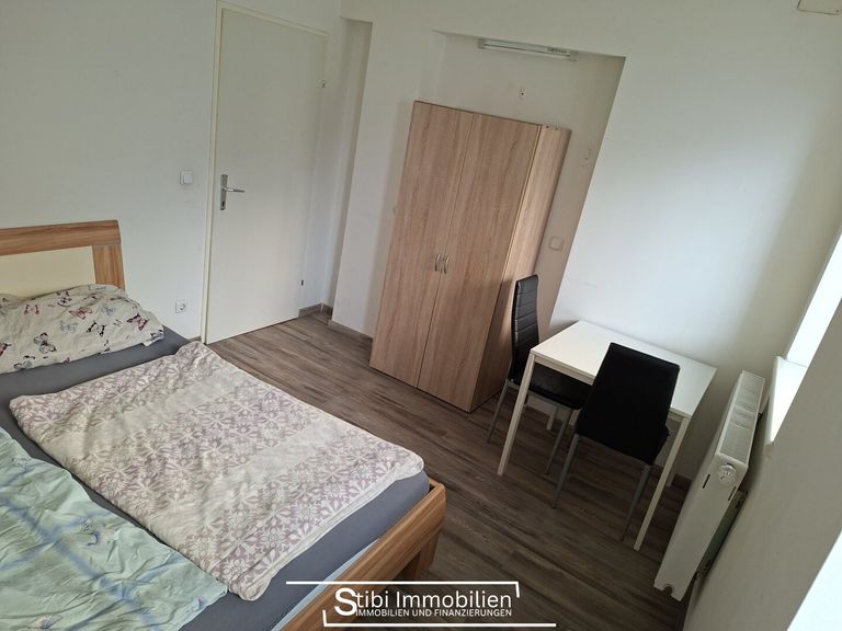 Die Wohnung besteht aus vier Zimmern, wovon ein Zimmer zur Vermietung steht. Das Zimmer ist voll möbliert (Bett, Schrank, Tisch, Matratze und Polster) – Koffer packen und einziehen. Jedes Zimmer ist absperrbar und separat begehbar.