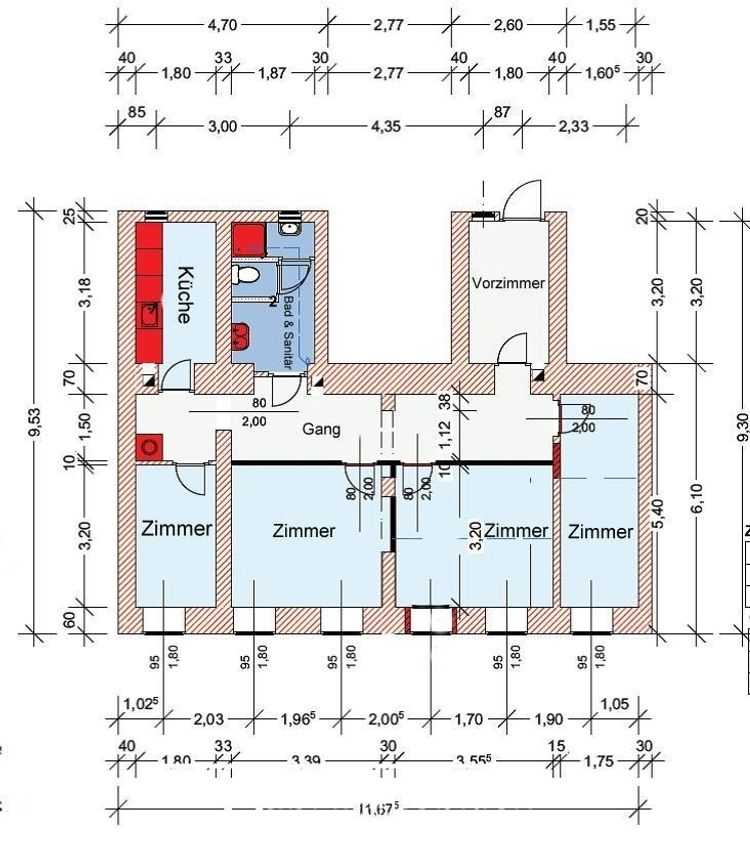 Im Zuge der Renovierung wurde die Wohnung kernsaniert. Küche und Bad wurden komplett neu ausgestattet, ebenso Fenster, Elektrik, Wasserinstallationen, Boden- und Wandbeläge.