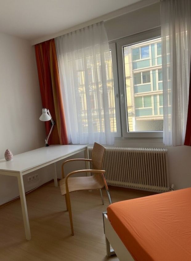 Das Zimmer ist straßenseitig,( Schallschutzfenster) ruhig und geräumig in einer Wohngemeinschaft angenehme ,ordentliche WG Bewohner.