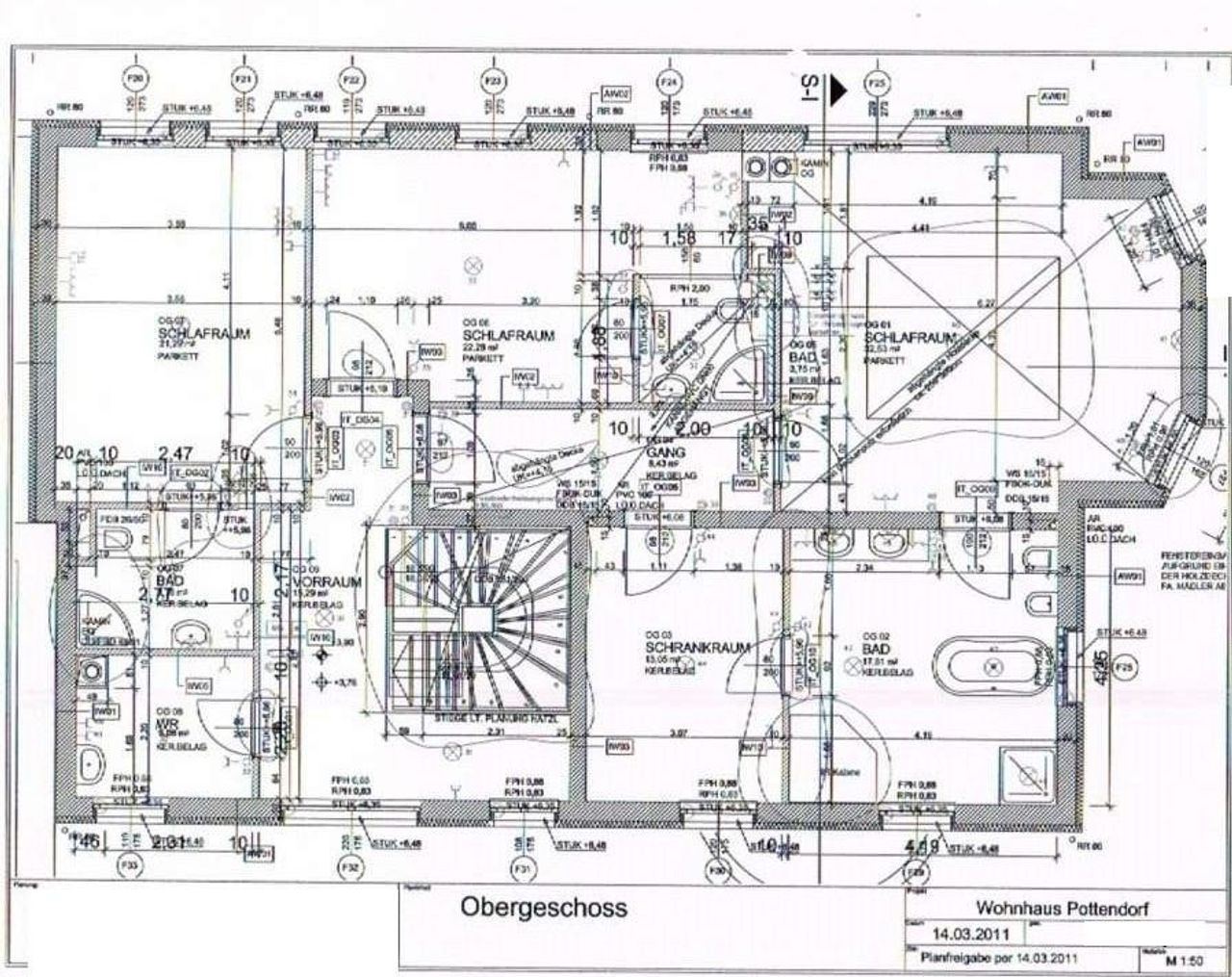Obergeschoß: 3 Zimmer, Schrankraum, 2 Badezimmer, 2 Toiletten, 1 Sauna