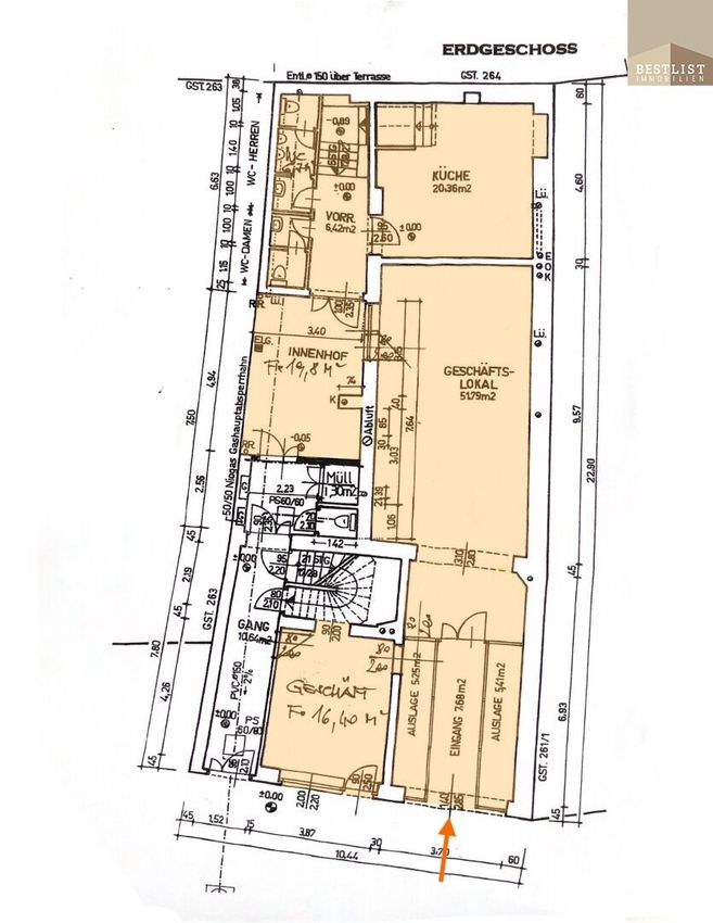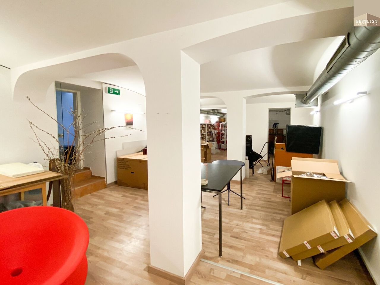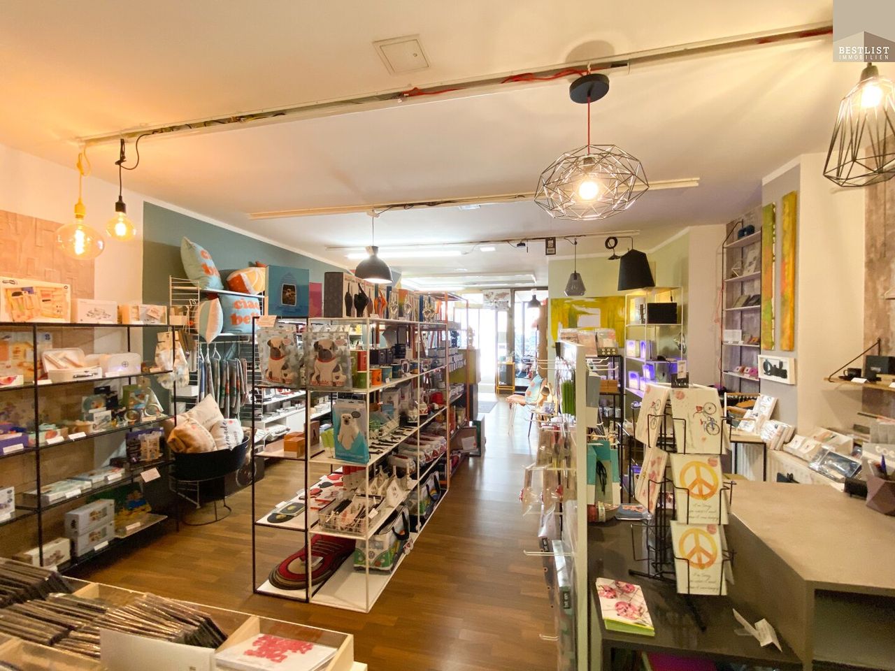 Zusätzlich verfügt das Geschäftslokal über einen einladenden Eingangsbereich (7,68 m²), eine attraktive Auslagenfläche (10,82 m²) und eine große Lagerfläche von ca. 64 m² im Keller.