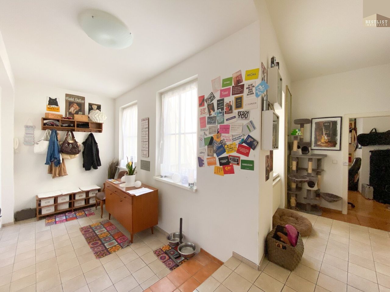 Beim Betreten der Wohnung gelangen Sie in den Vorraum, von dem aus mehrere Zimmer zentral erreichbar sind.