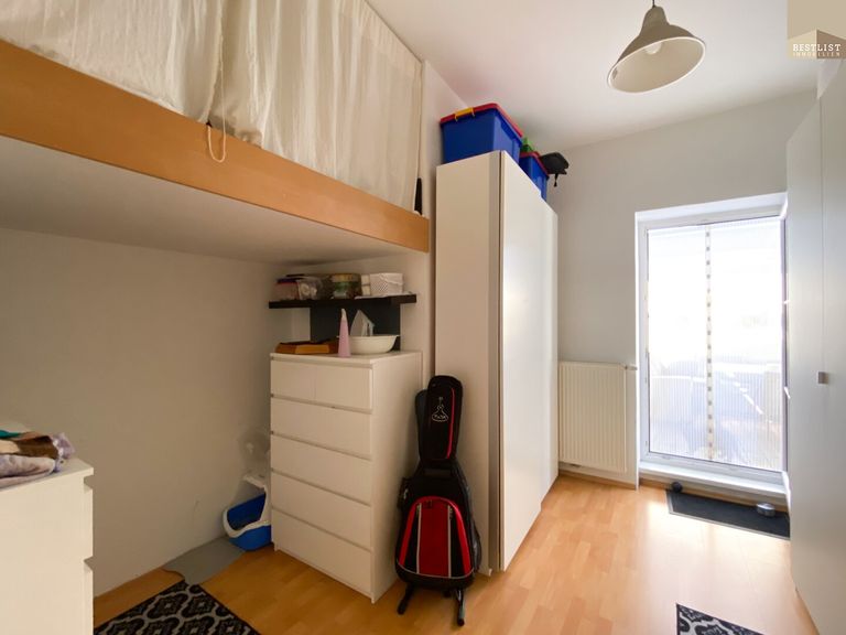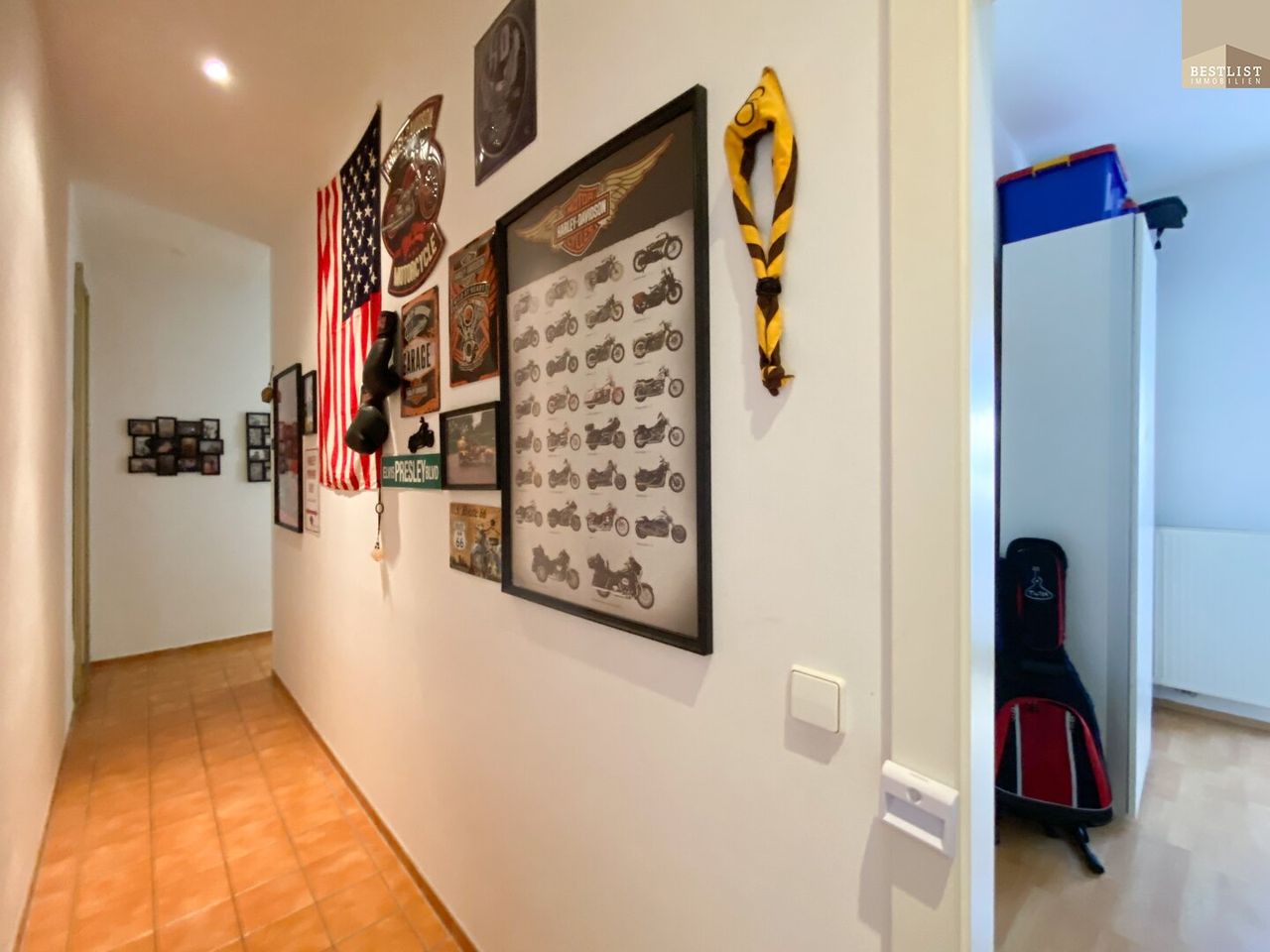 Beim Betreten der Wohnung gelangt man in den Vorraum, von dem aus mehrere Räume zentral zugänglich sind. Rechts befinden sich zwei Schlafzimmer und ein Abstellraum. Auf der linken Seite befindet sich die Küche, von der aus man in den großzügigen Wohn-/Essbereich gelangt. Von hier aus gelangt man in das Bad und ein weiteres Zimmer.