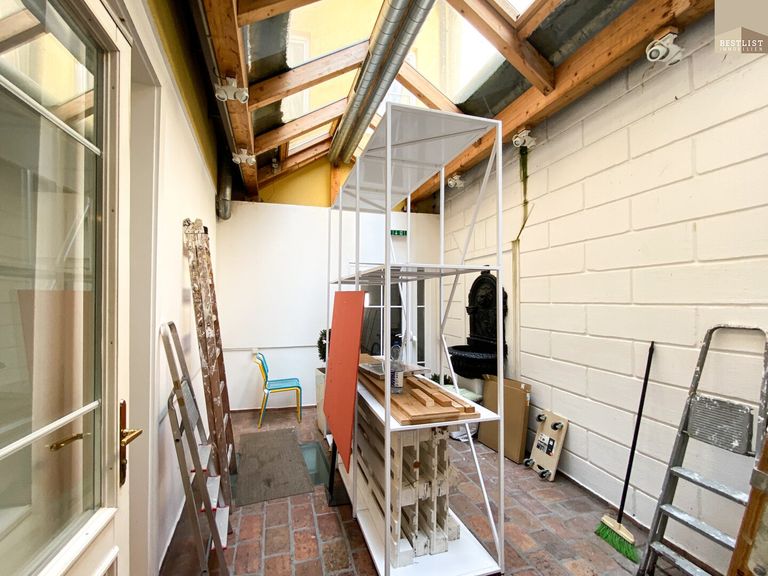 Das Geschäftslokal im Erdgeschoss bietet eine großzügige Nutzfläche von ca. 121 m². Diese erstreckt sich über drei geräumige Zimmer, einen Innenhof mit ansprechendem Glasdach, einen Vorraum und eine Toilettenanlage.