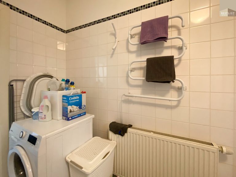 Das gut ausgestattete Badezimmer verfügt über eine Dusche, eine Badewanne, einen Waschtisch und einen Waschmaschinenanschluss. Das WC ist separat untergebracht.
