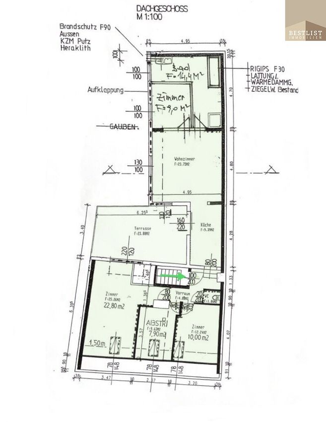 Diese Wohnung befindet sich im Dachgeschoss und verfügt über eine ca. 23 m2 große Terrasse. Die Wohnung hat eine Wohnfläche von ca. 110 m². Die Fläche verteilt sich auf einen Vorraum, ein Wohn-/Esszimmer, eine Küche, ein Bad, ein WC, einen Abstellraum und vier weitere Räume, die vielseitig genutzt werden können.
