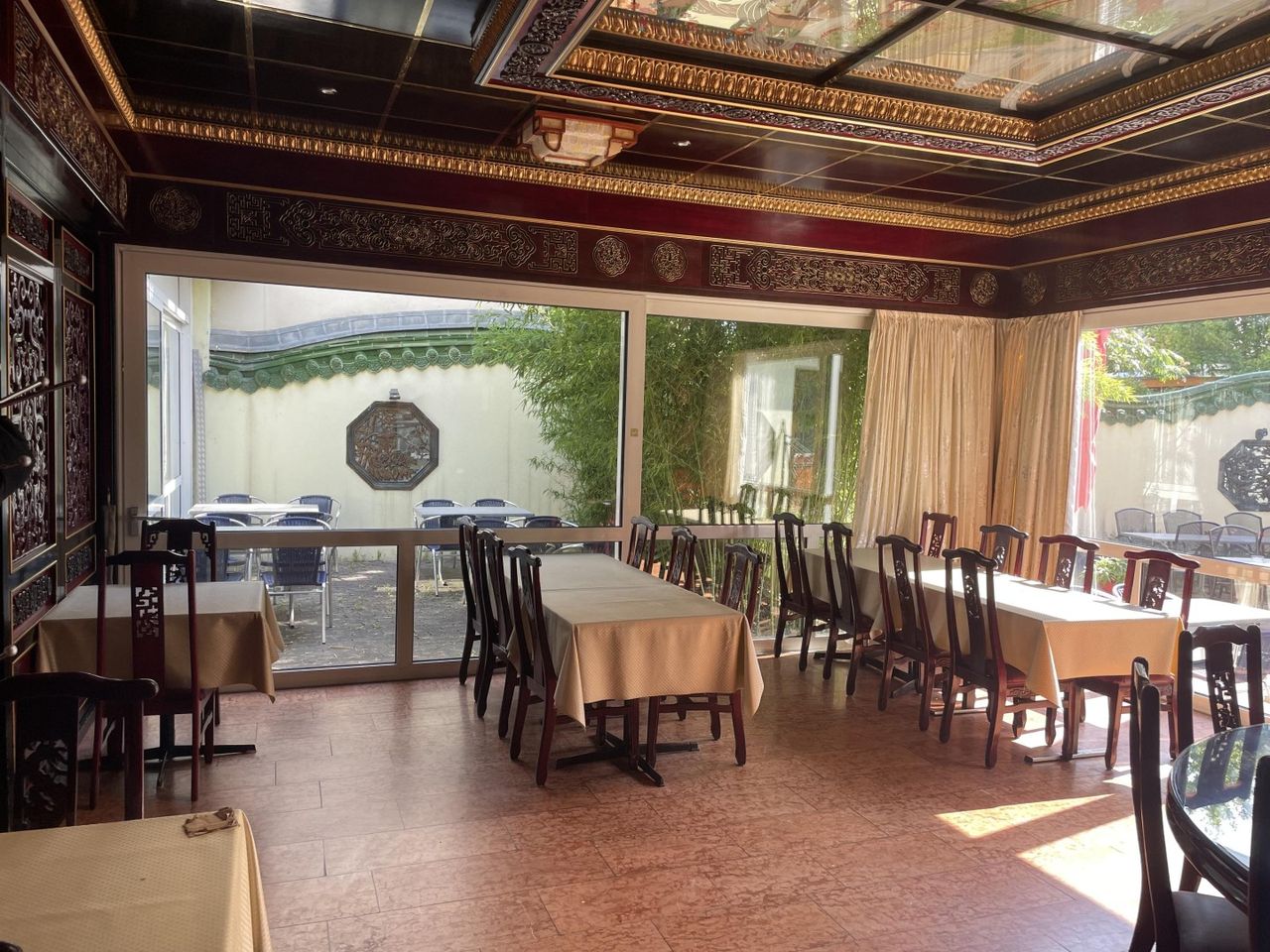 Erdgeschoss: ca. 500m2 - bestehend aus Gasträumen, Küche, Toiletten-Anlagen, Personalräumen, Lager und Stiegenhaus und zusätzlichem Gastgarten.