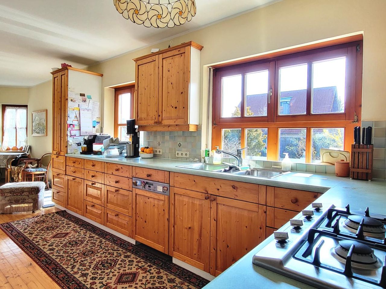 GERÄUMIGES BESTANDSHAUS UND EIN NEBENHAUS MIT DER OPTION AUF EINE ZUSÄTZLICHE GARTENFLÄCHE Historisch gewachsenes Bestandsgebäude aus dem Jahr 1913, welches 1989 umfassend saniert und zu 2 Wohneinheiten, mit einer Wohnfläche von ca. 265m² umgebaut wurde. Ein zusätzliches Neben- oder Gästehaus welches separat, als auch vom Haupthaus zugänglich, ist bietet weitere ca. 42m² Wohnfläche. Dadurch wurde das Grundstück durch die gekoppelte Bauweise optimal ausgenützt. AUSSTATTUNG: Massivbauweise, Bramac Dach, Holz-Isolierglasfenster, Zentralheizung mit Flüssiggastank, Kachelofen, 2 Küchen, Holzböden in beiden Ebenen. ERDGESCHOSS: Windfang, Diele mit Aufgang in das Dachgeschoss, ca. 60m² Wohnraum mit integrierter Küche und Zugang zur ca. 48m2 Südterrasse, Bad, separates...