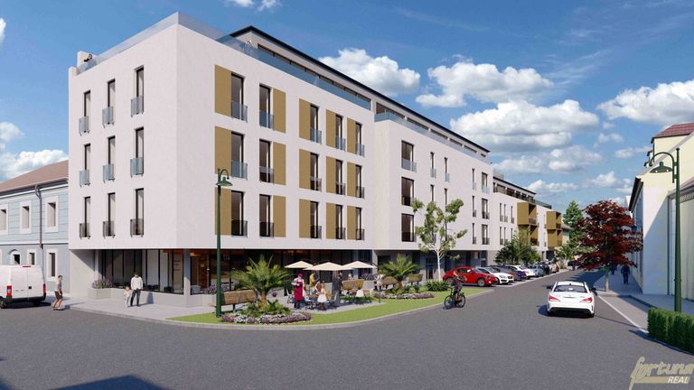 In der Gesamtanlage sind bereits rund 30 Wohnungen verkauft und bewohnt, Im Erdgeschoss des Gebäudes befindet sich ein Gastronomiebetrieb.