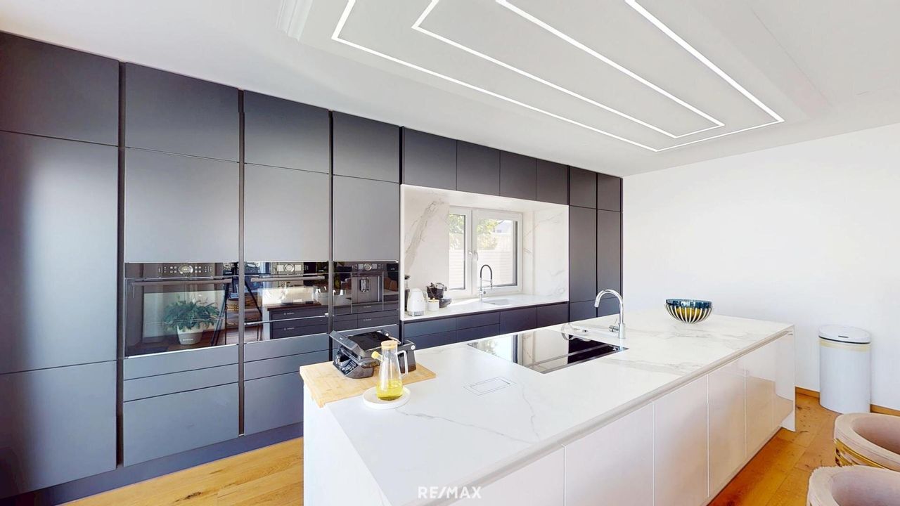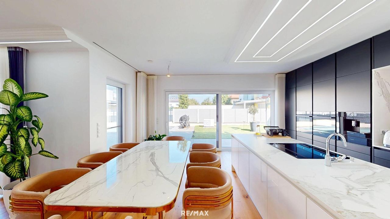 REPRÄSENTATIVE TRAUMVILLA IN BESTLAGE VON HIMBERG NÄHE WIEN & U1 Wohnen auf höchstem Niveau! Diese exklusive Traumvilla in absoluter Ruhelage von Himberg vereint modernste Ausstattung, zeitloses Design und höchsten Wohnkomfort. Auf einem ca. 605 m2 großen Grundstück erwartet Sie eine Immobilie, die durch 241 m2 Wohnnutzfläche und insgesamt ca. 280 m2 Nutzfläche beeindruckt. ARCHITEKTUR & BAUWEISE Die Villa wurde ca. 2021 in massiver Ziegelbauweise mit hochwertigem Vollwärmeschutz errichtet und bietet mit einer Raumhöhe von rund 2,75 m ein großzügiges, helles Wohngefühl. Dreifach isolierte Kunststofffenster mit elektrischen Rollläden (inkl. Fernbedienung) und integrierten Fliegengittern, elegante Eichenparkettböden geölt sowie edler Feinsteinzeug in allen...
