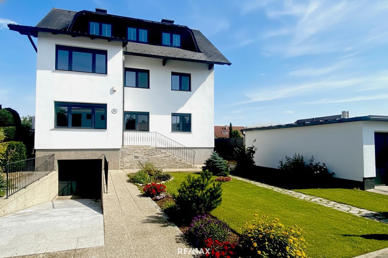 Die Zimmer sind mit Parkettböden, exklusiven Fliesen, LED Beleuchtung sowie Massivholztüren ausgestattet. Der Dachboden wäre noch ausbaubar. Das gesamte Haus wird über eine neuwertige Gaskombitherme beheizt und im Wohnsalon ist eine Klimatisierung installiert. In der Garage, welche direkt vom Haus begehbar ist und sich ein PKW- Stellplatz befindet sowie eine Sauna, ein Wirtschaftsraum die Technikzentrale und ausreichend Stauraum für die Familie. Eine weitere Garage mit Montagegrube ist an der Grundgrenze angeordnet. Von den oberen Zimmern genießen Sie einen herrlichen Rundumblick auf die Voralpen.