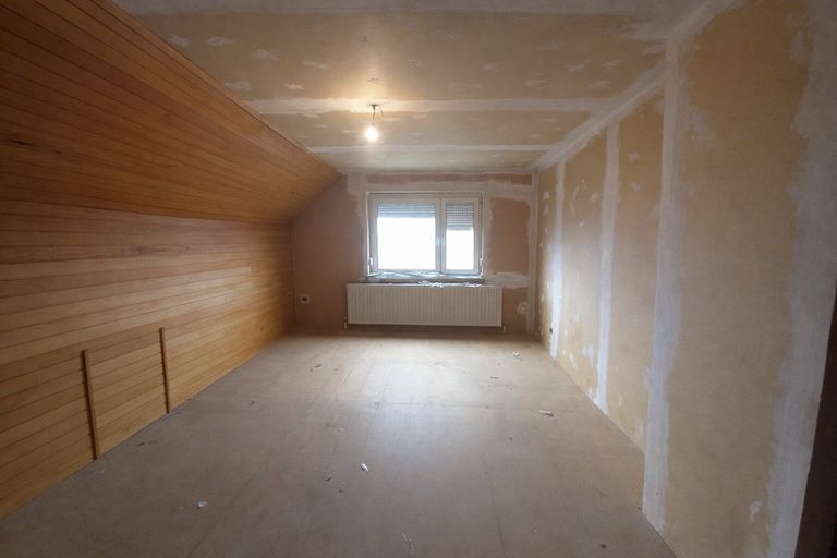 Im Obergeschoss, dass man getrennt vom Erdgeschoss erreicht und daher auch eine eventuelle Vermietunsmöglichkeit bietet, ist eine Küche mit Speis, Wohnzimmer, Schlafzimmer, Kinderzimmer, Vorraum und ein Bad mit Wanne und Dusche vorgesehen. Da im Obergeschoss großteilig nur der Trockenbau gemacht worden ist, sind hier ihren Wünschen keine grenzen gesetzt.