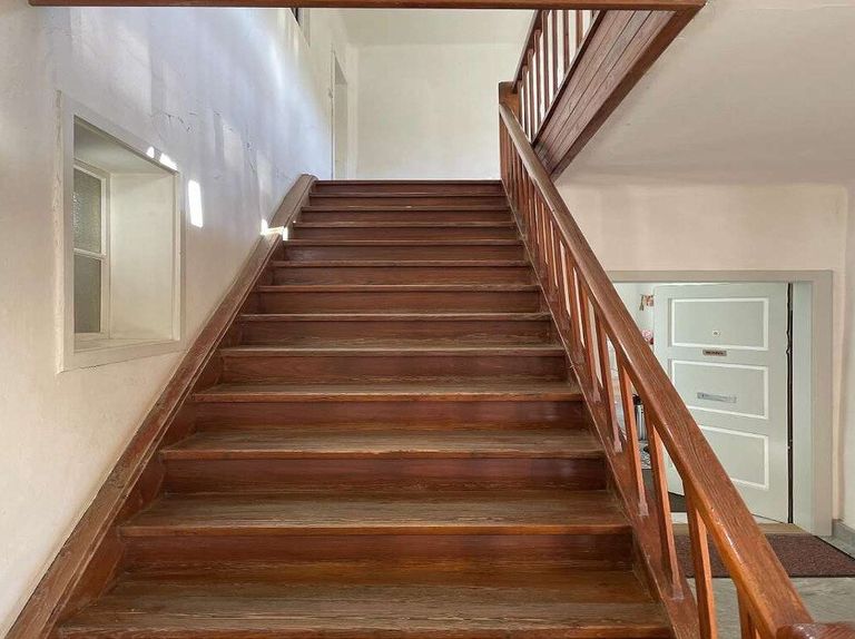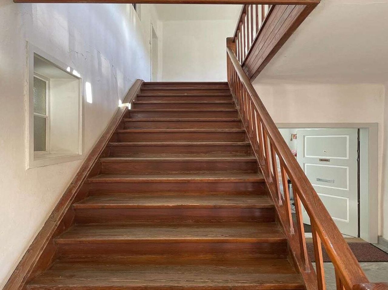 Über eine schöne alte Holztreppe kommt man in Obergeschoss, wo sich ebenfalls zwei Einheiten zu 80 m² und 70 m² befinden.
