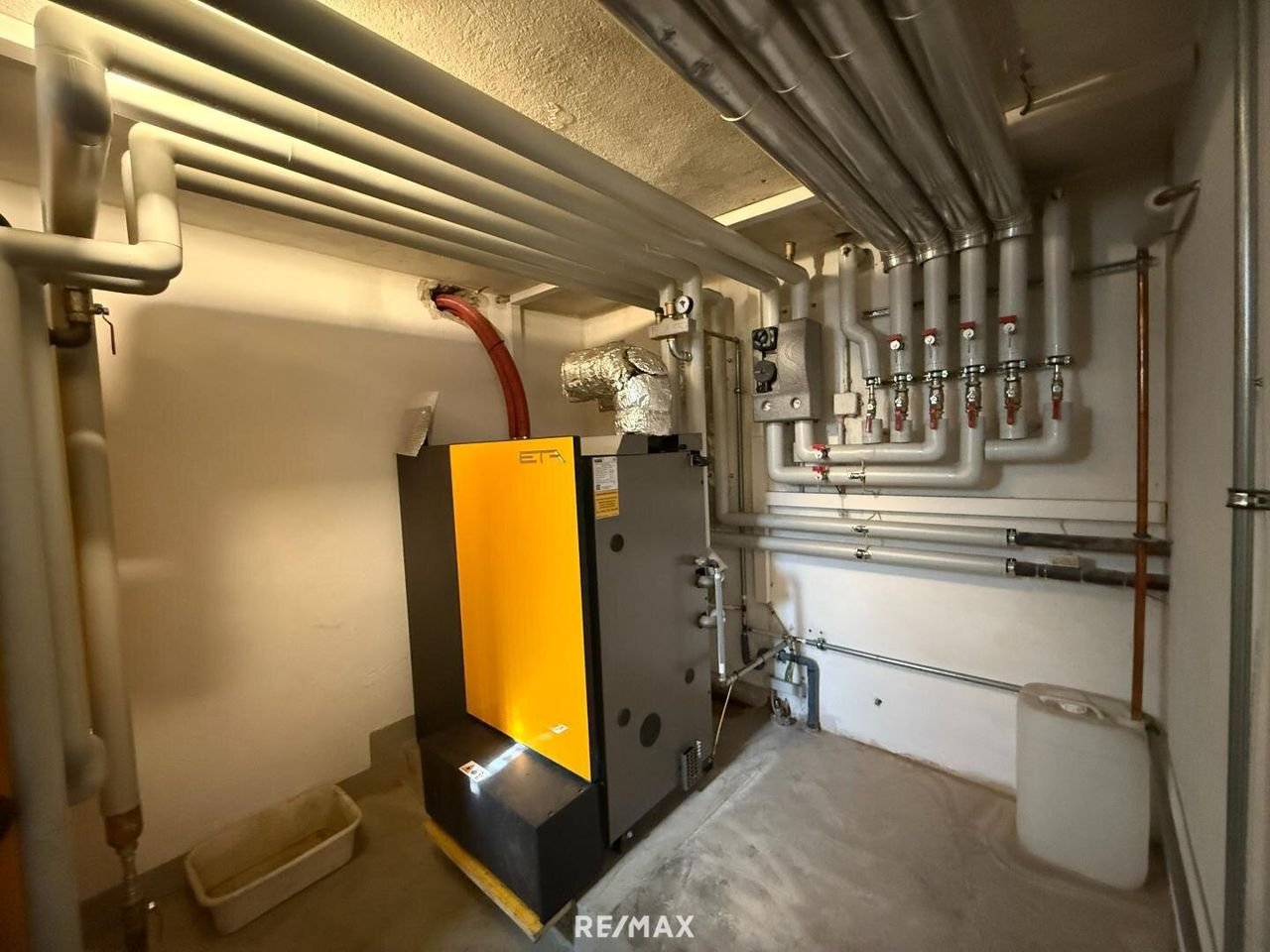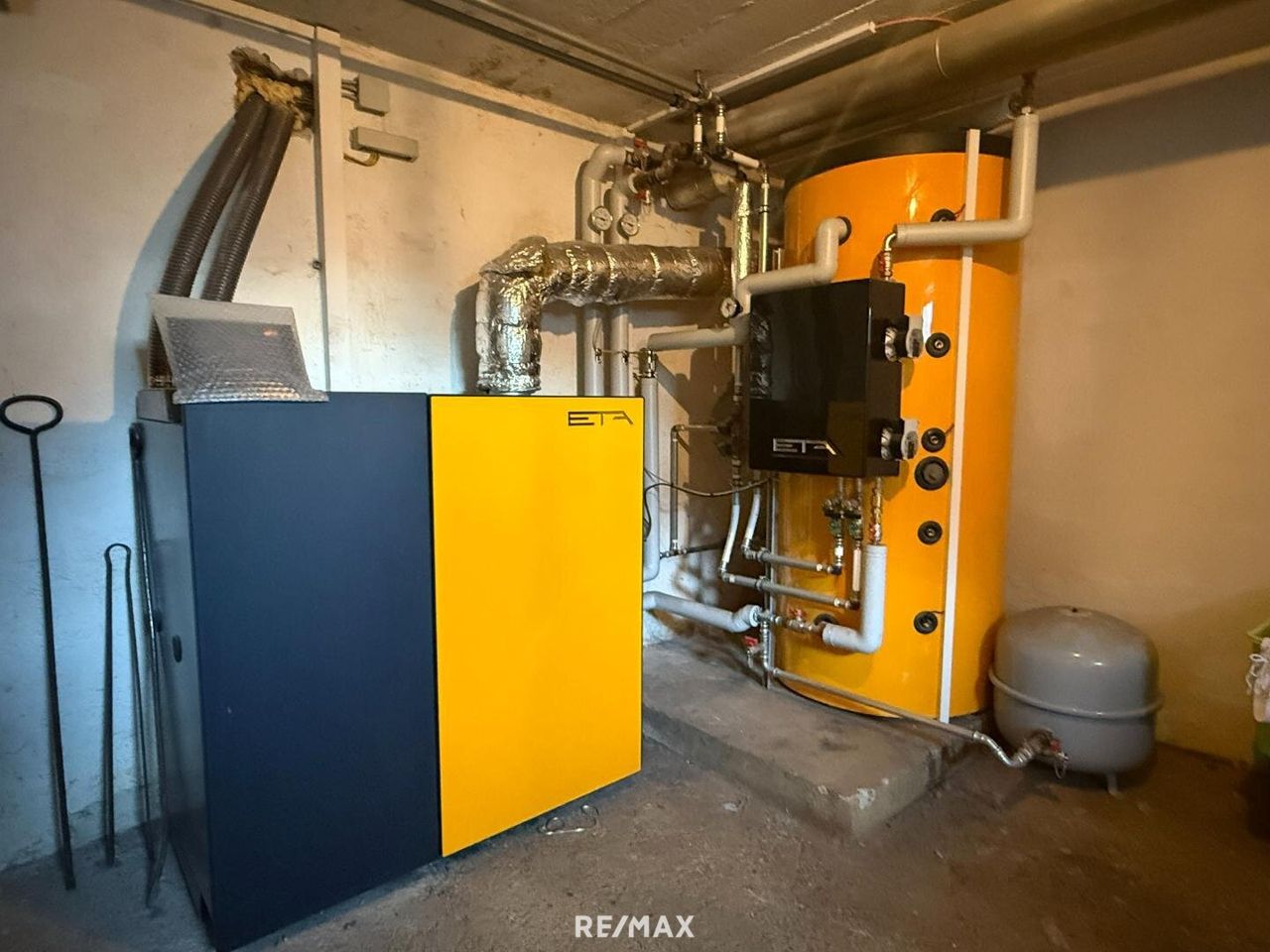 Nachhaltige Technik: neue Pelletheizung (2023) mit großem Pellets-Tank, 825-Liter Pufferspeicher, Solarpaneele (2005) zur Warmwasserbereitung + Warmwasserspeicher (2008)