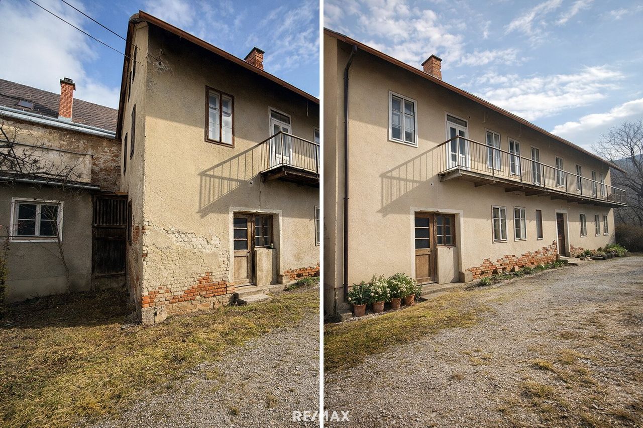 In bester Lage von Kindberg, direkt an der Hauptstraße 65+67, wartet dieses beeindruckende Investmentobjekt mit riesigem Potenzial auf seine nächste Erfolgsgeschichte. Auf 1.721 m² Grundstücksfläche vereint sich hier ein Wohn- und Geschäftshaus mit einer Gesamtnutzfläche von rund 885 m², die sich in 524 m² Wohnfläche und 180 m² Geschäftsfläche aufteilen – ergänzt durch Nebenräume, eine große überdachte Terrasse und ein Nebengebäude mit zusätzlichem Ausbaupotenzial.