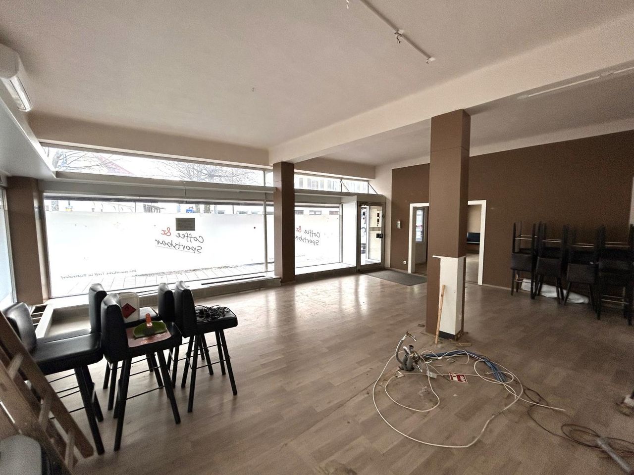 Im Erdgeschoss befindet sich das ca. 141m² große Geschäftslokal, das durch seine attraktive Glasfront und die zentrale Lage eine hohe Sichtbarkeit garantiert. Die offene Raumaufteilung lässt sich ideal an verschiedene Geschäftsmodelle anpassen. Die helle, freundliche Atmosphäre sowie die Schaufenster bieten eine hervorragende Präsentationsfläche für jedes Gewerbe und versprechen gute Geschäftsmöglichkeiten. Ein zusätzlicher Vorteil ist die barrierefreie Erreichbarkeit und die guten Parkmöglichkeiten in unmittelbarer Nähe.
