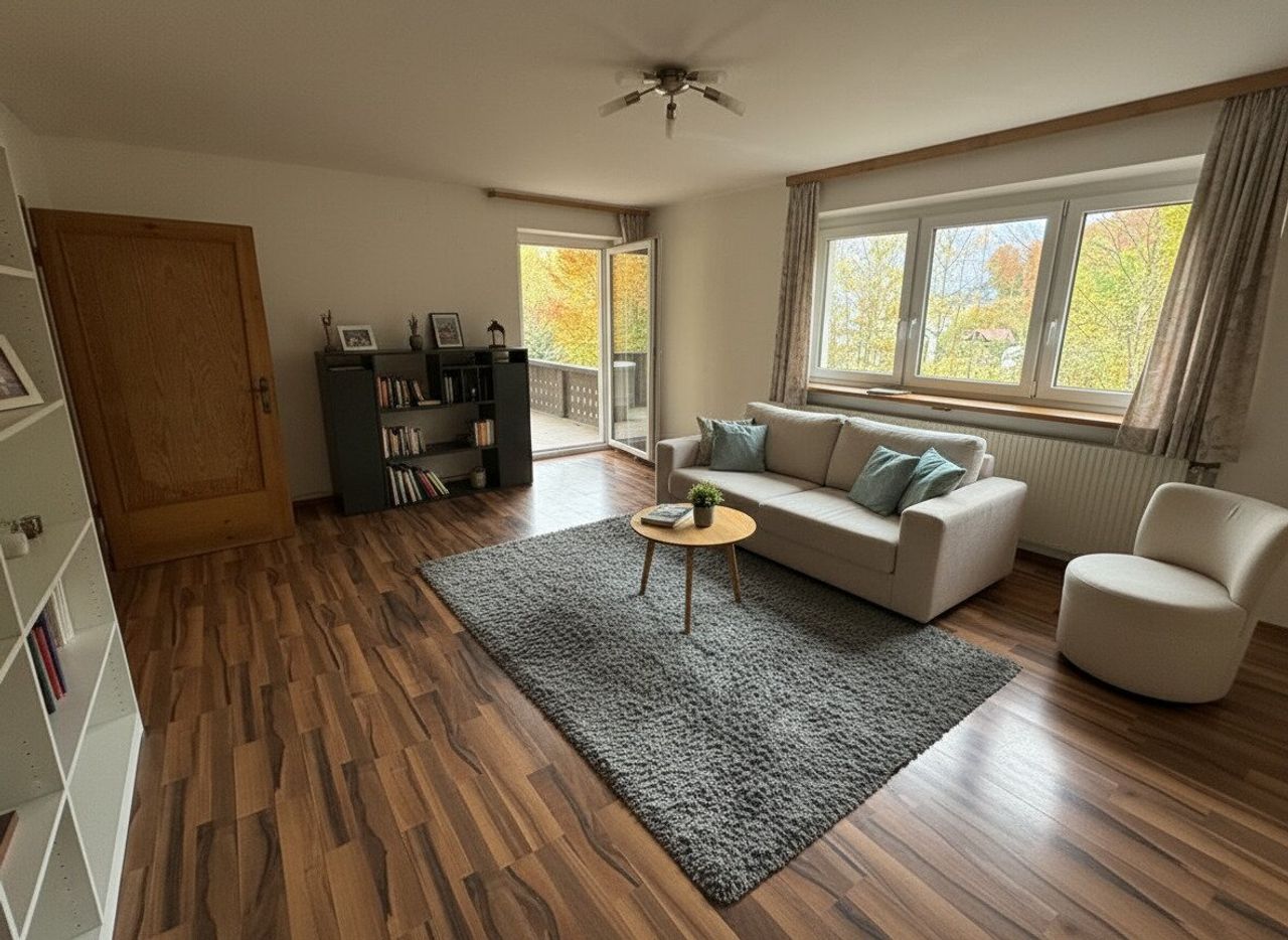 Besonders hervorzuheben sind die drei Balkone, die einen herrlichen Blick ins Grüne ermöglichen und zum Entspannen einladen.