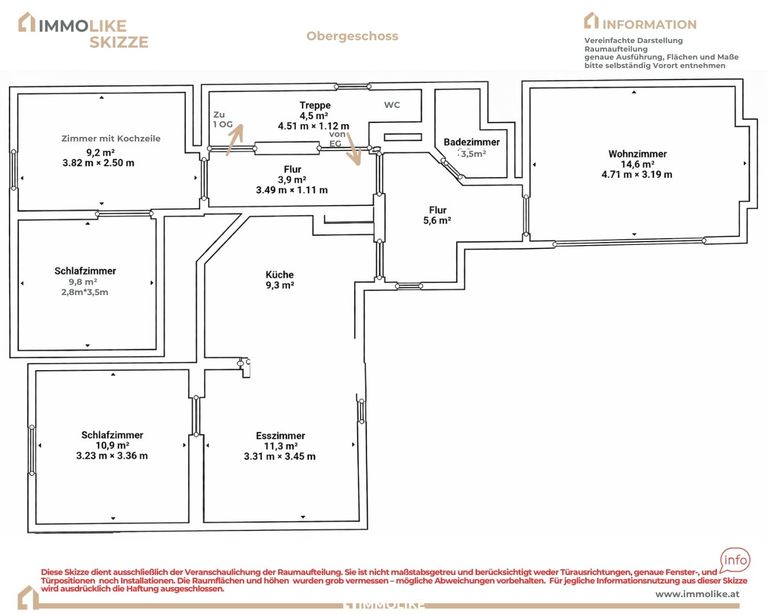 - 1.Obergeschoss: aktuell eine größere Einheit, auch teilbar in zwei kleinere Wohnungen (z. B. Wohnung + Garçonnière)