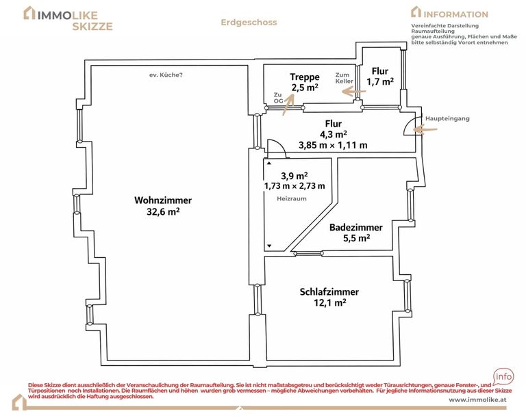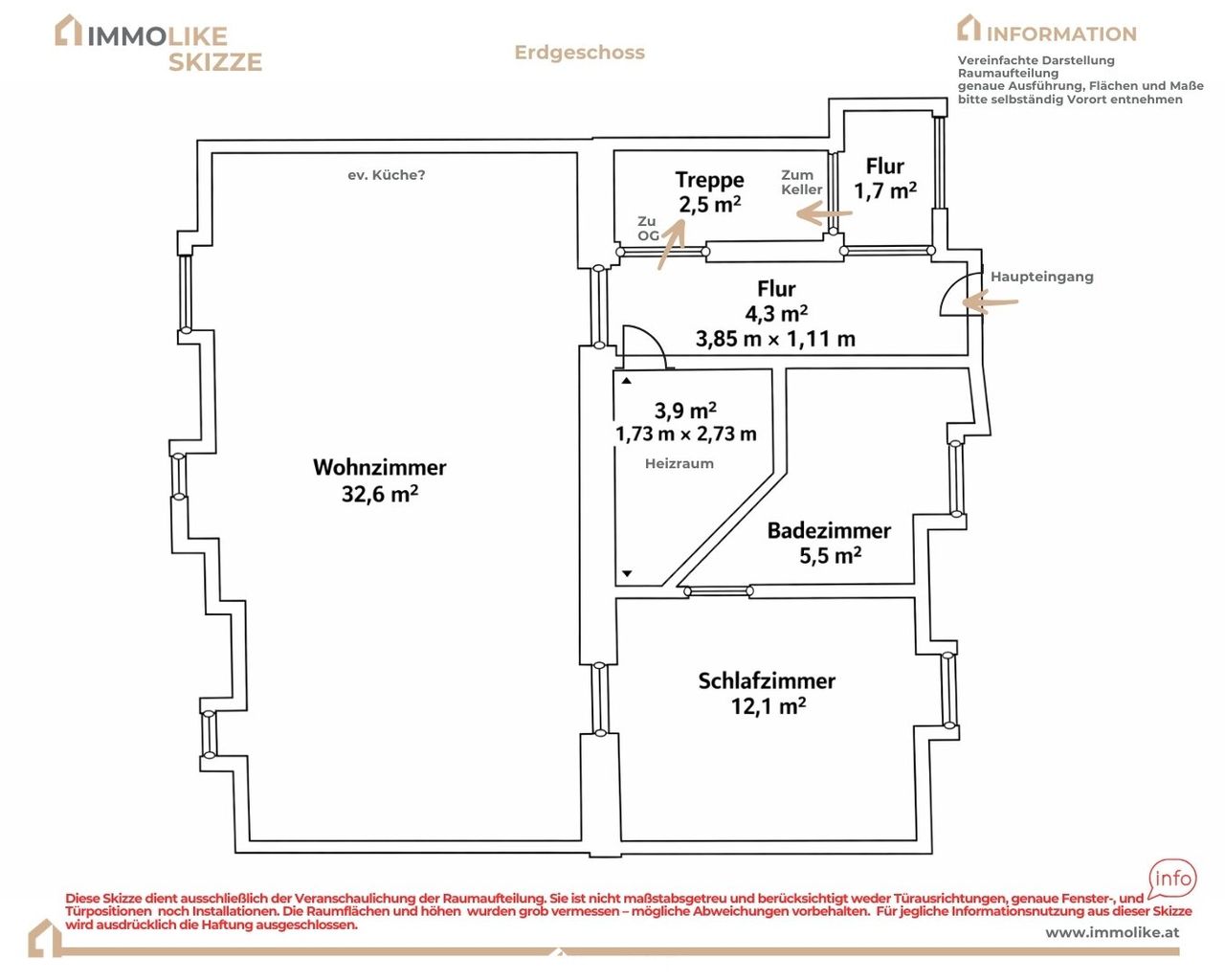 Die Liegenschaft bietet somit eine attraktive Grundlage für ein individuelles Wohn- oder Investmentkonzept. Die baurechtliche Genehmigungssituation sowie mögliche Ausbauten sind vom Käufer eigenständig zu prüfen.