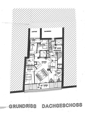 Dachgeschoss (nicht ausgebaut): ca. 122 m², mit Balkon und beeindruckender Aussicht – bereit für neue Nutzungsideen