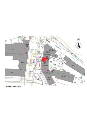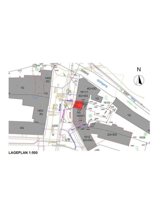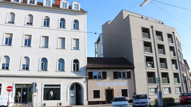 Die Liegenschaft ist derzeit mit einem dreiseitig angebauten Wohnhaus bebaut. Auf Basis der Baubewilligung vom 07.01.2022 wird das Bestandsgebäude abgebrochen und durch ein Wohn- und Geschäftshaus mit vier Eigentumswohnungen und einem Geschäftslokal ersetzt. Haustechnik und Nebenräume sind im Kellergeschoss untergebracht, das Geschäftslokal befindet sich im Erdgeschoss. Die Wohnungen erstrecken sich über vier oberirdische Geschosse, jeweils mit einem Abstellraum im Dachgeschoss.