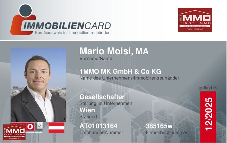 Für genauere Informationen, weitere Fragen und Besichtigungen steht Ihnen Herr Mario Moisi, MA, MBA jederzeit gerne unter +43 676 844 752 200 oder office@1mmo.at zur Verfügung!