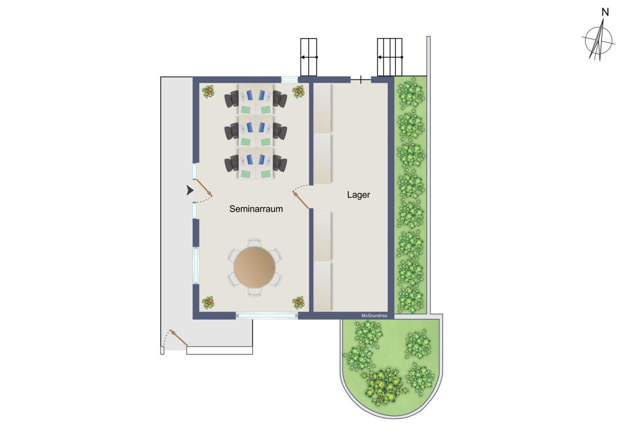 Die Flächen vom Haupthaus setzen sich aus ca. 198 m² Wohn- und Seminarflächen im Erdgeschoss und im ausgebauten Dachgeschoss aus ca. 195 m² Nutzfläche, welche als Lagerraum genehmigt sind zusammen.