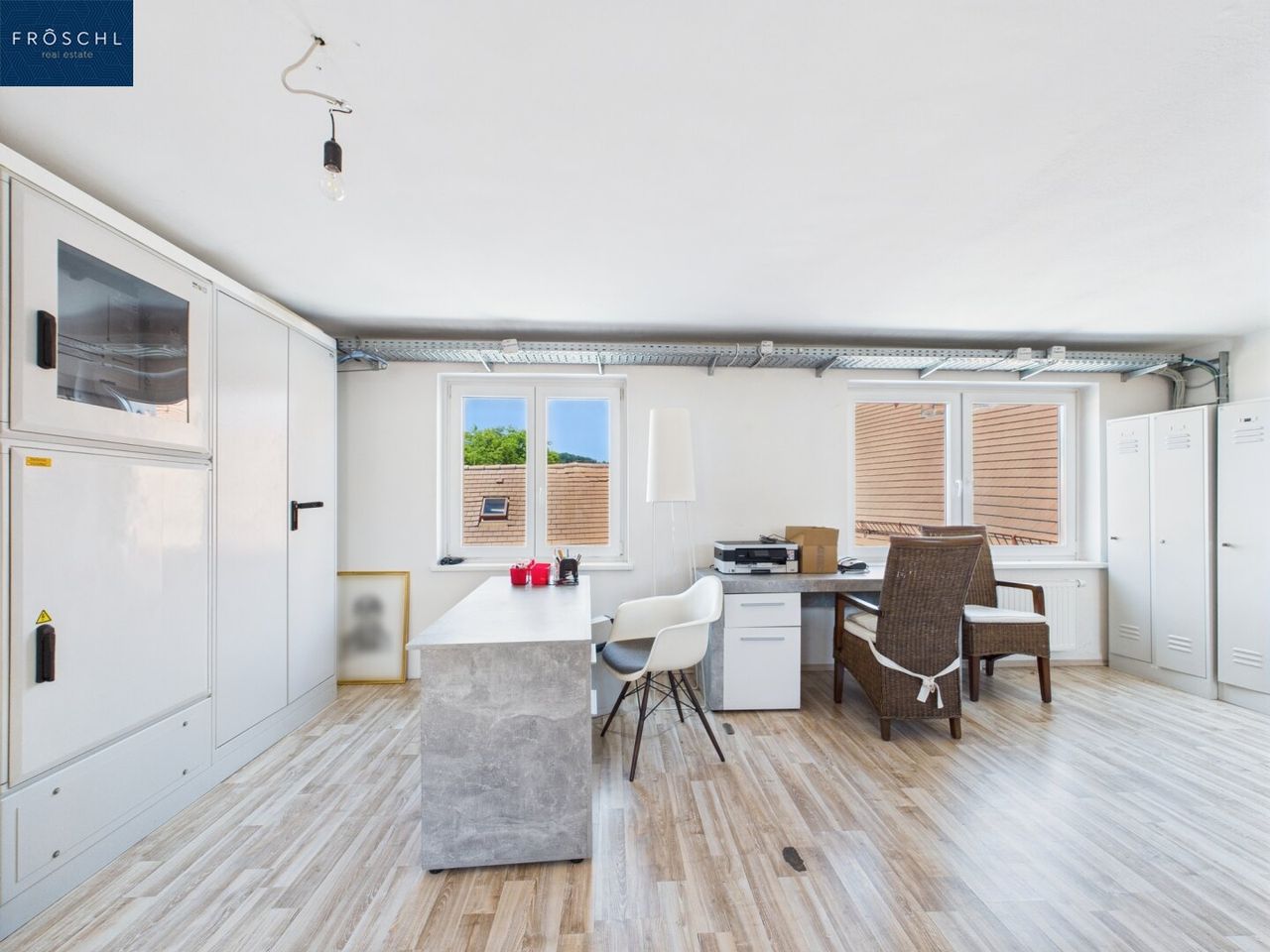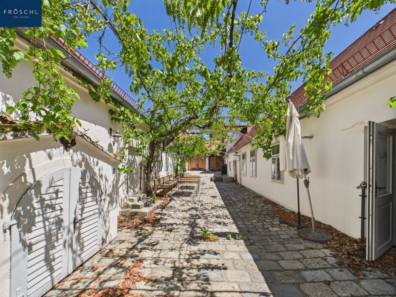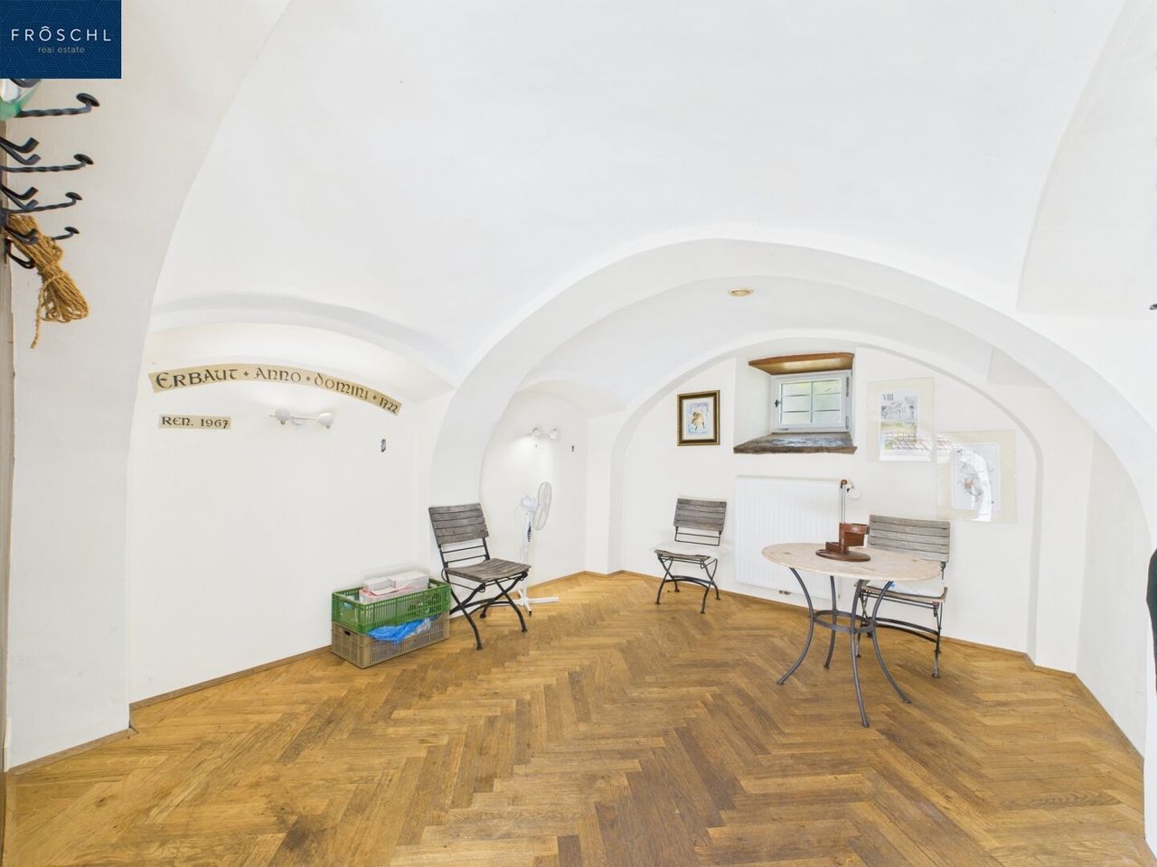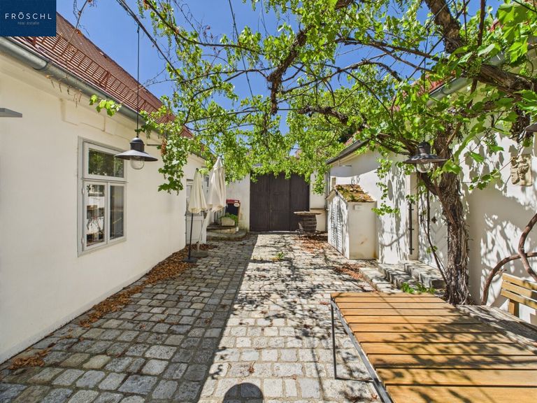 Das um 1722/24 errichtete historische Gasthaus "Galbrunerhof" präsentiert sich als charmantes Gebäudeensemble bestehend aus zwei selbständigen Bauteilen, die straßenseitig zur Rainharterstraße durch einen gemauerten Torbogen miteinander verbunden sind. Das Ensemble umschließt einen reizvollen Innenhof und erstreckt sich durchgängig von der Rainharterstraße bis zur Zwettler Straße. Nach einer umfangreichen und behutsamen Generalsanierung im Jahr 2016, die durch einen 51-seitigen Restaurierungsbericht dokumentiert ist, erstrahlt das Denkmalschutz-Objekt in neuem Glanz bei gleichzeitiger Wahrung seiner historischen Authentizität.