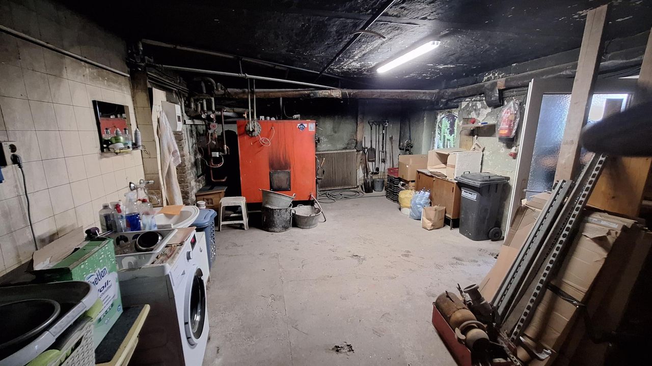Auf dem länglichen Baugrundstück befinden sich ein Haupthaus, ein Nebengebäude , sowie ein Glashaus mit ca. 200 m2 für eine Gärtnerei. Das 1969 errichtete Haupthaus in Massiv-Ziegel und Betonbauweise wurde später mit Kunststoff Isolierglasfenster ausgestattet. Das Haus ist renovierungsbedürftig, aber grundsätzlich erhaltenswürdig. Das Kellergeschoss mit einer Raumhöhe von 2,2 m bietet weitere Ausbaumöglichkeiten und beherbergt die Heizungsanlage und Lagerräume. Das Nebenhaus hat eine Nutzfläche von ca. 180 m2, der Dachboden ist begehbar und als Einliegerwohnung ausbaubar.