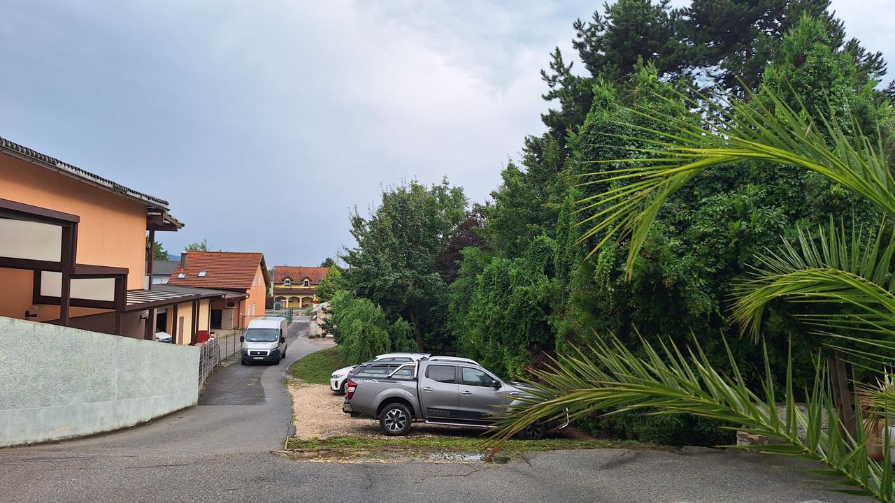 Eine Zufahrtsstraße und ein Parkplatz in der Mitte des Grundstückes sind ebenfalls Bestandteile dieser besonderen Liegenschaft. An der Nordseite des Grundstückes schließt ein privater Wald mit herrlicher Fernsicht und reichhaltiger Vegetation.