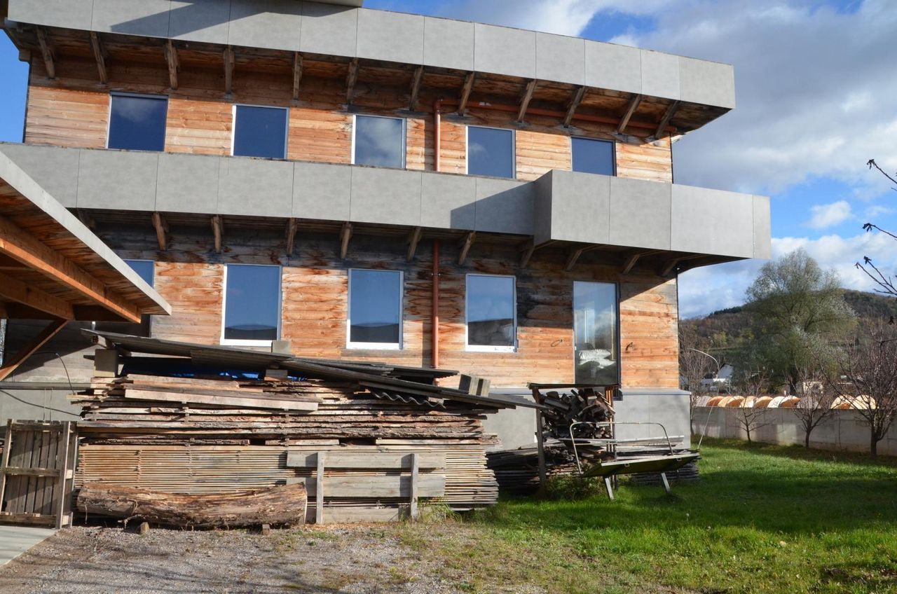 Holz-Hybridbauweise: Massive Holzdecken sorgen für ein behagliches Raumklima, während die Beton-Innenwände die gespeicherte Wärme optimal nutzen. Hochwertige Außenwände: Die Holzständerbauweise mit über 30 cm mineralischer Isolierung und 40 mm Massivholzverkleidung garantiert eine außergewöhnliche Energieeffizienz. Großzügige Raumhöhe: Mit fast 3 Metern entsteht ein lichtdurchflutetes Wohnambiente, welches ein Gefühl von Offenheit vermittelt. Intelligentes Design: Die Südausrichtung und die durchdachte Beschattung durch Balkone sorgen für passive Wärmegewinnung im Winter und angenehme Kühle im Sommer.