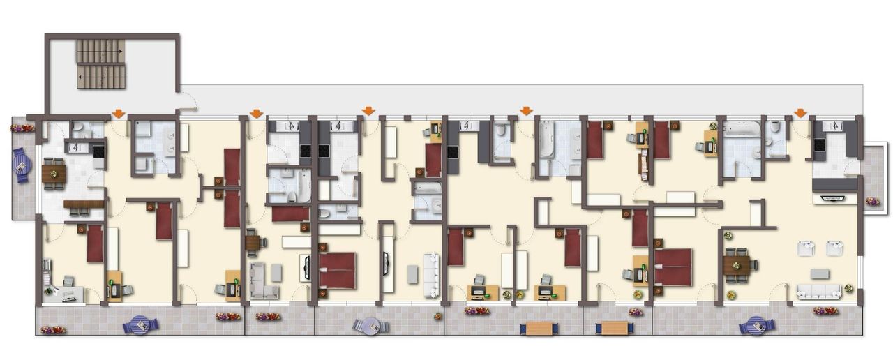 Alle Wohneinheiten sind derzeit befristet vermietet mit einer monatlichen Nettomiete von 12.316,65 EUR.