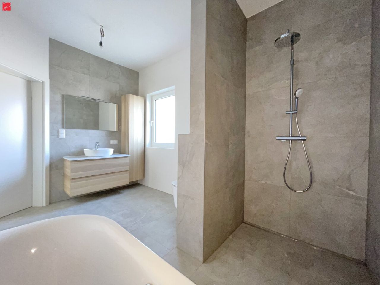 - Hochwertige Materialien (Eiche-Parkettboden, Feinsteinzeug)
