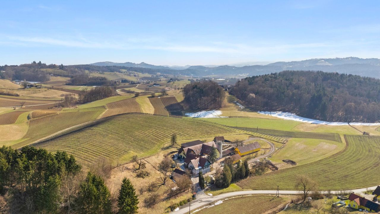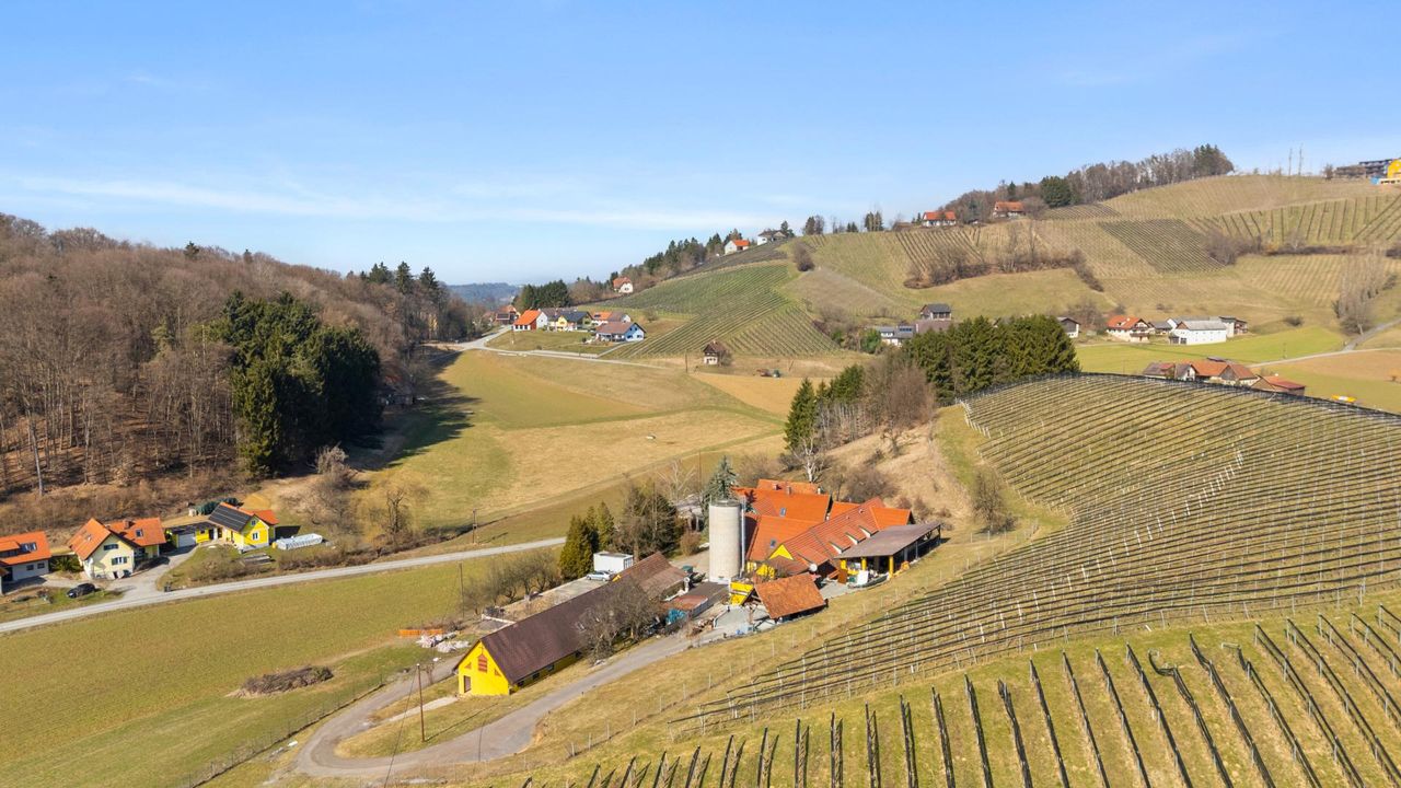 Ruhend in den sanften Hügeln des Sausals liegt diese vielseitige landwirtschaftliche Liegenschaft in einer der charakteristischsten Kulturlandschaften der Südsteiermark. Die Region rund um St. Nikolai im Sausal ist geprägt von Weinbau, landwirtschaftlichen Flächen und weitläufigen Grünlandschaften, welche der Umgebung ihren ruhigen und zugleich traditionsreichen Charakter verleihen.