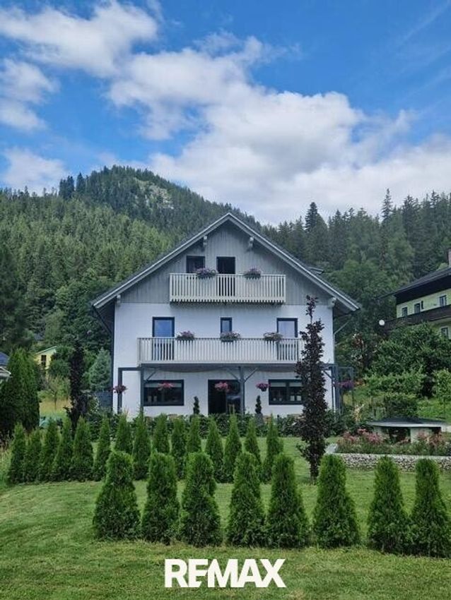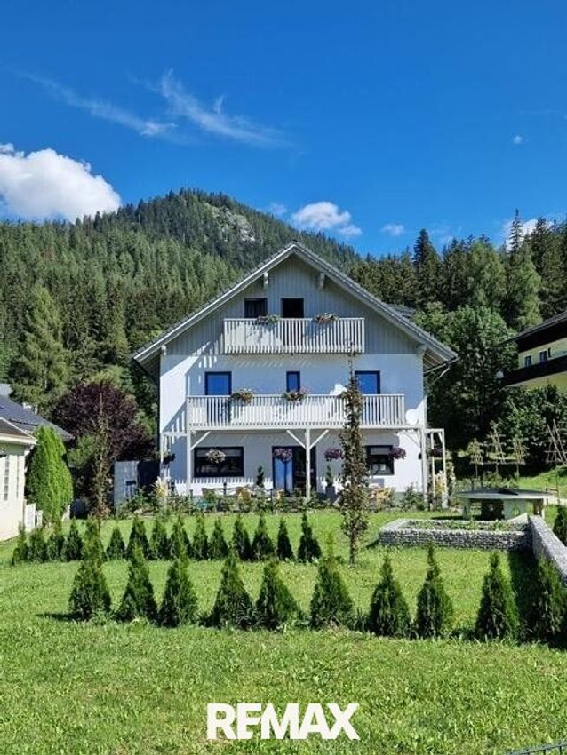 Von RE/MAX Nature zum Kauf angeboten wird ein tolles, großzügiges Wohnhaus mit ca. 400m² Wohnfläche aufgeteilt auf 3 Etagen. Es befindet sich in bester Sonnenlage und bietet einen absolut aussergewöhnlichen Blick auf den imposanten Hausberg der Region, den Grimming. Die Lage könnte wohl nicht besser sein, ruhig und doch zentral nahe der Tauplitzalm Alpenstraße, in einer kleinen Siedlung auf einem schönen, ebenen Grundstück. Nutzungsmöglichkeiten für dieses besondere Haus gibt es viele wie zum Beispiel: - als Domizil für die Großfamilie - für mehrere Familien mit unterschiedlichen Wohnbereichen - für teilweise touristische Nutzung - als Pension oder Apartmenthaus Ziemlich alles ist...