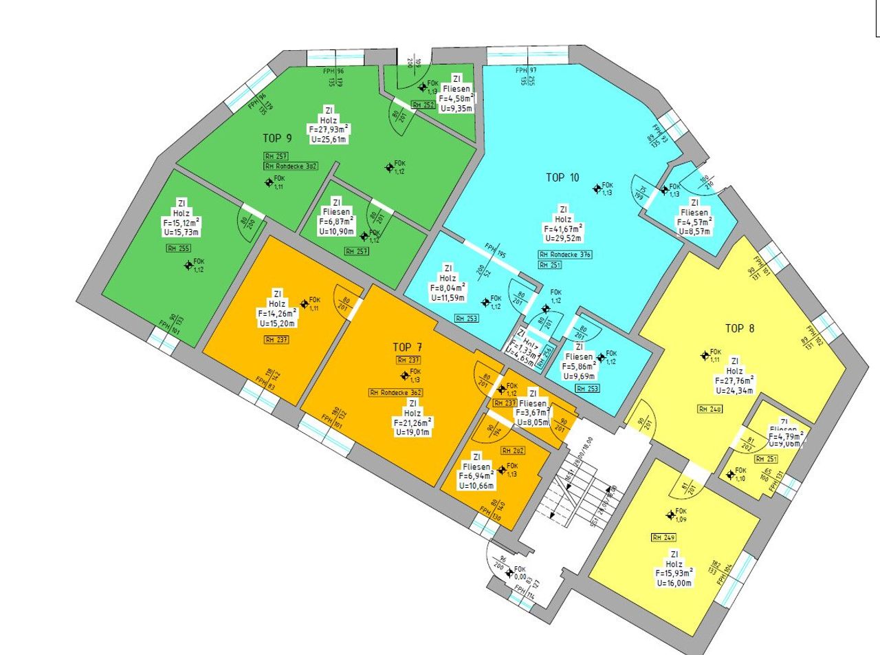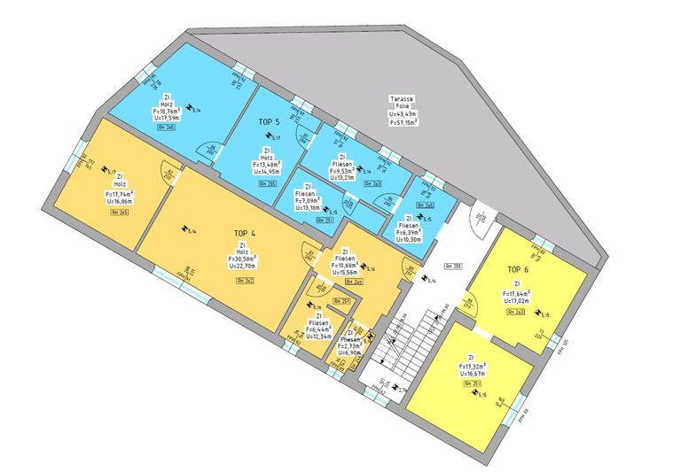 1.OG: Top 6, Top 5, Top 4, allgemeine Terrasse