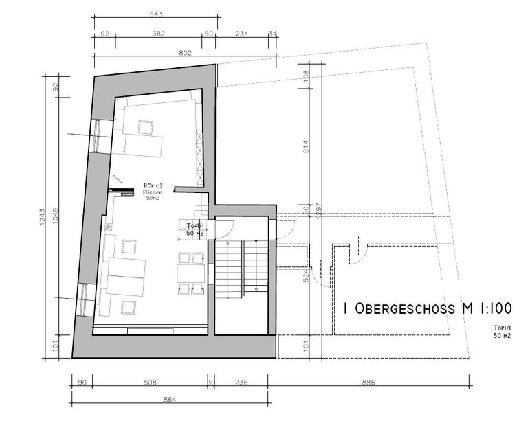 Die Gesamtnutzfläche beträgt ca. 850 m² und verteilt sich wie folgt: Kellergeschoss: ca. 50 m² - Erdgeschoss: ca. 220 m² - 1.Obergeschoss: ca. 50 m² - 2.Obergeschoss: ca. 220 m² - Dachgeschoss: ca. 220 m² - Dachfläche (ausbaufähig): ca. 100 m²