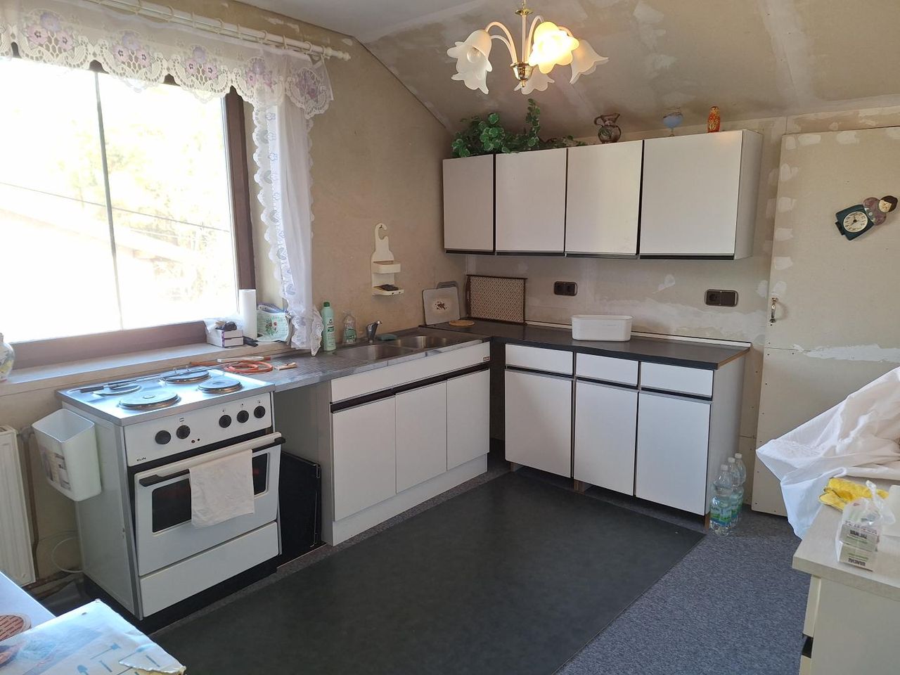 Das Haus ist teilunterkellert und verfügt über insgesamt acht Zimmer, die sich auf zwei Wohneinheiten verteilen. Im Erdgeschoss befinden sich vier Zimmer sowie ein Badezimmer mit separatem WC, im Obergeschoss stehen weitere vier Zimmer und ebenfalls ein Bad mit WC zur Verfügung. Für Fahrzeuge gibt es eine Garage, die Platz für einen PKW bietet.