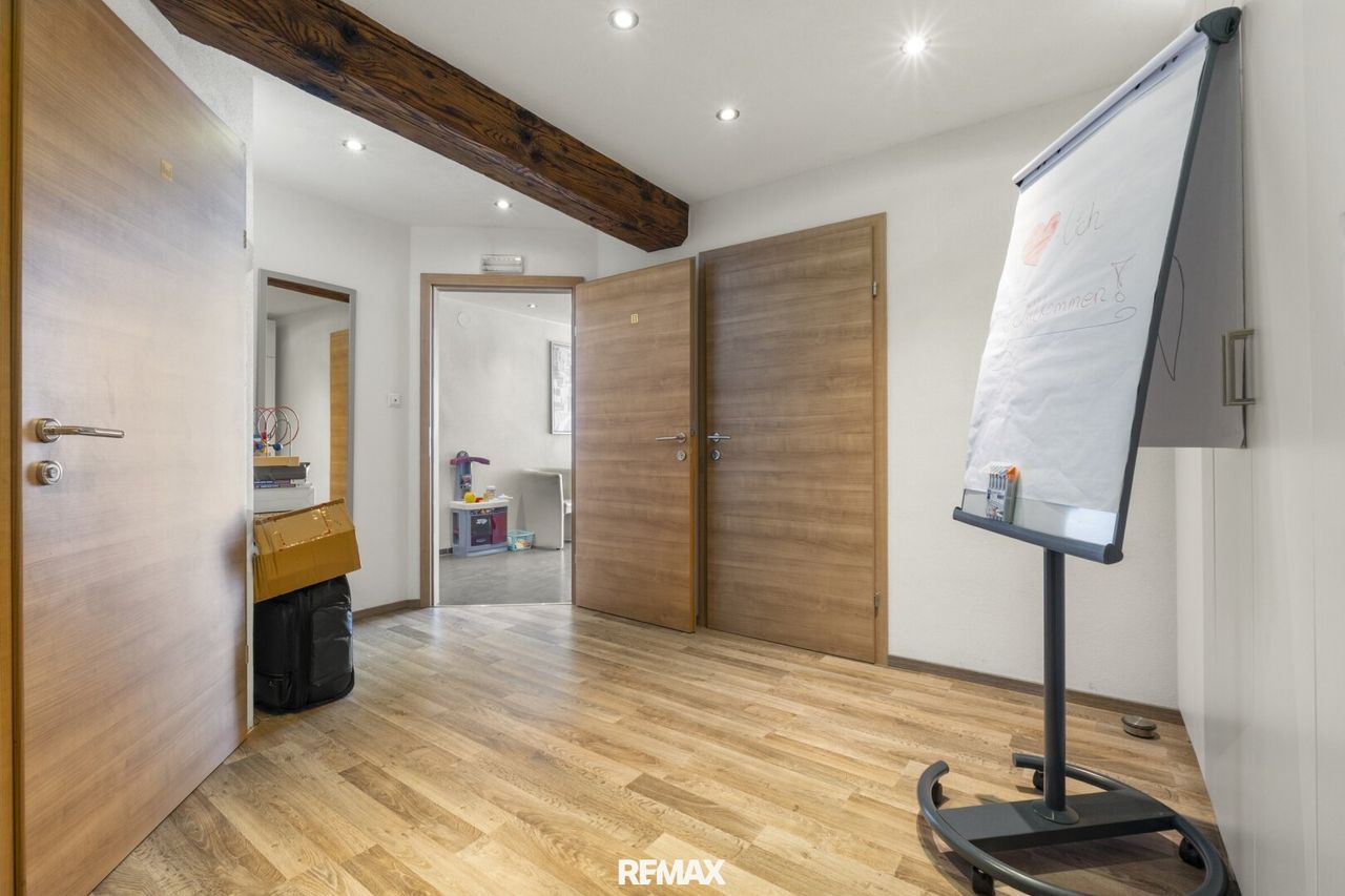 Das Gebäude bietet eine gesamte Nutzfläche von ca. 588,58 m², verteilt auf Erd- und 1. Obergeschoss. Das Erdgeschoss mit ca. 279,03 m² besteht aus zwei Geschäftslokalen, die derzeit für ca. € 12.600 pro Jahr vermietet sind. Das ca. 2023 sanierte 1. Obergeschoss mit 7,5 Zimmer auf ca. 309,55 m² eignet sich für private Wohnzwecke oder zur Vermietung.
